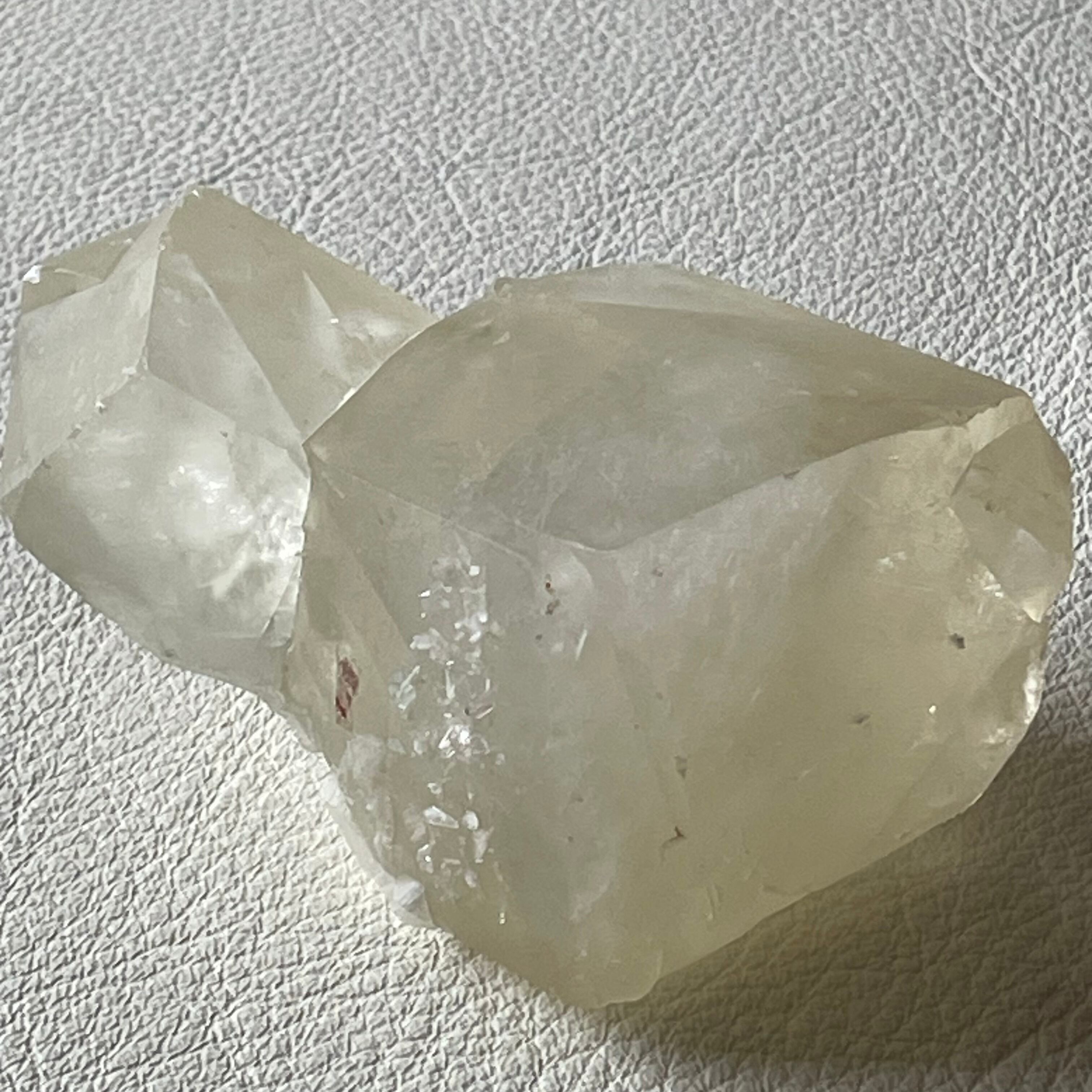 水晶と同じグループのカルサイトは炭酸カルシウムを成分とする鉱物で、世界中で産出されます。大理石や鍾乳洞にあるつらら状になった鍾乳石もカルサイトと同じ成分でできています。カルサイトは色彩も無色透明からオレンジ、ピンク、バイオレット、緑色や青色など存在し、結晶の形もさまざまあり、美しい石ですが硬度が低く割れやすい性質があるので宝石に仕立てられることはほとんどありません。