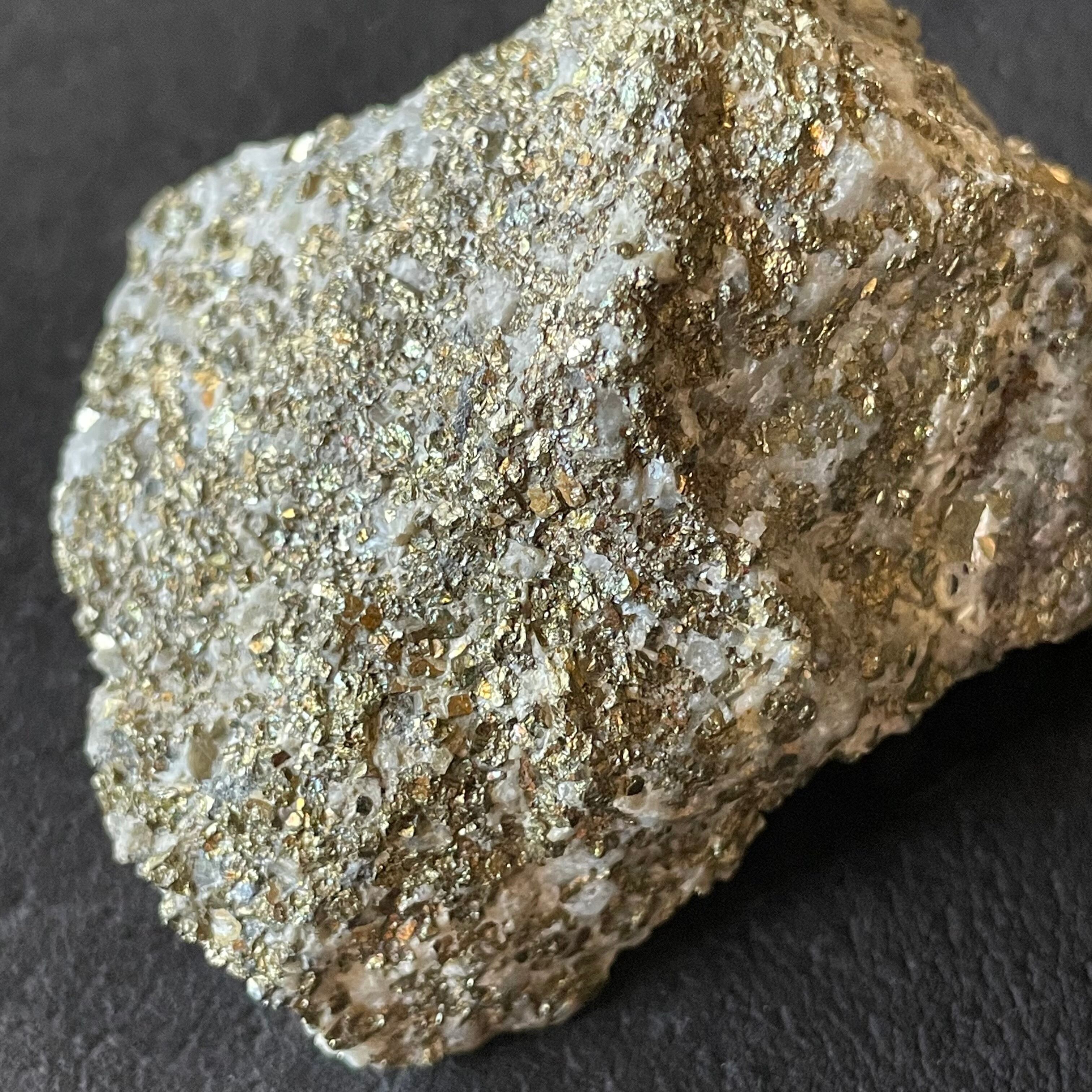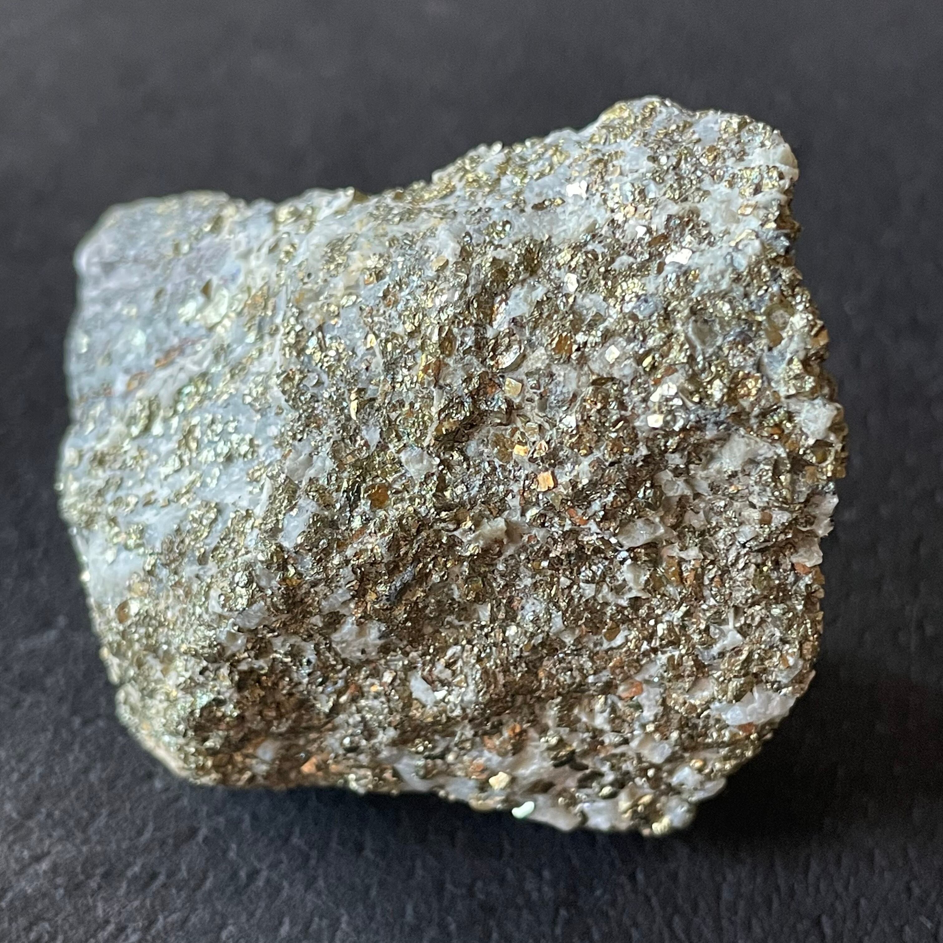 母岩全体にチャルコパイライトが覆っていて、結晶も見られます。