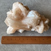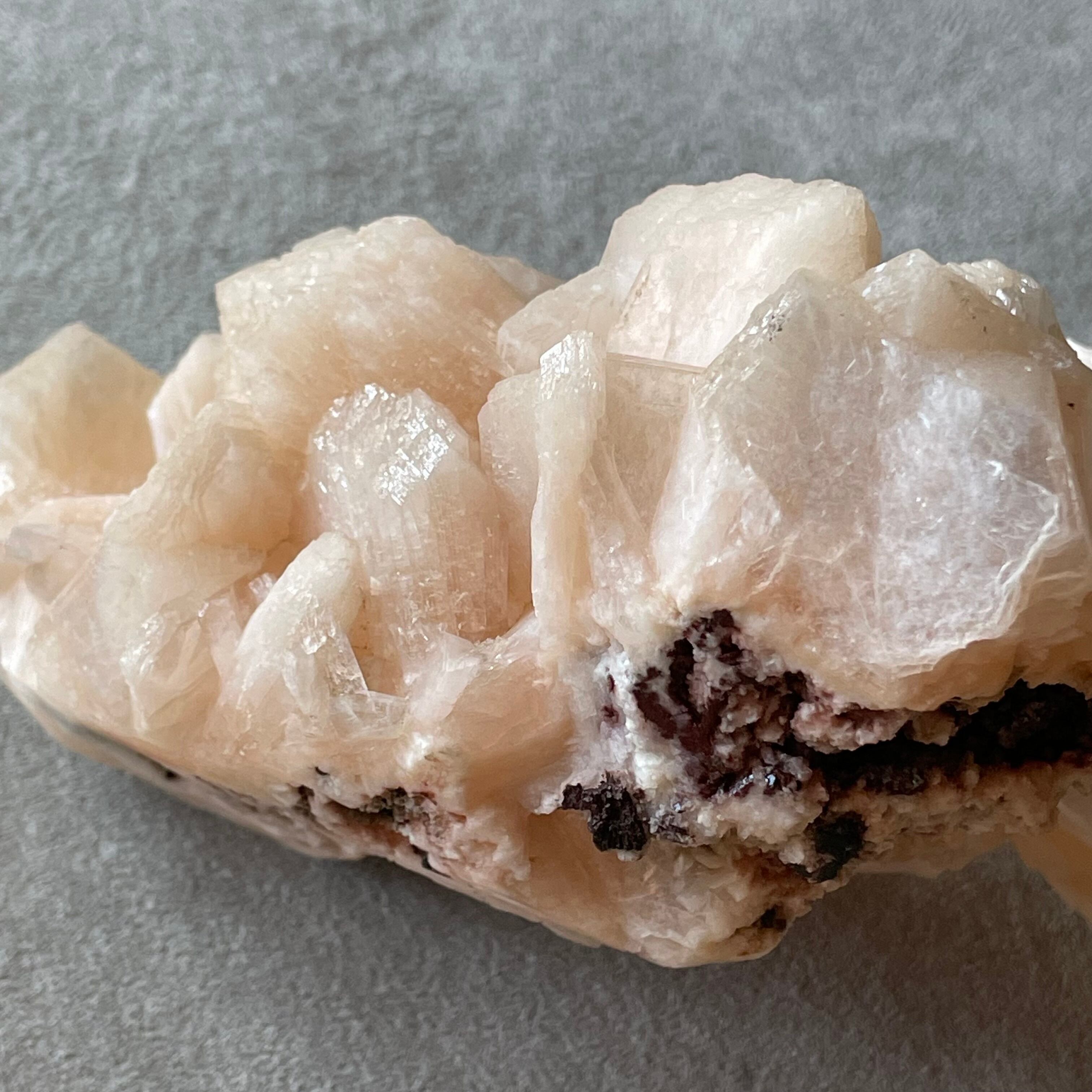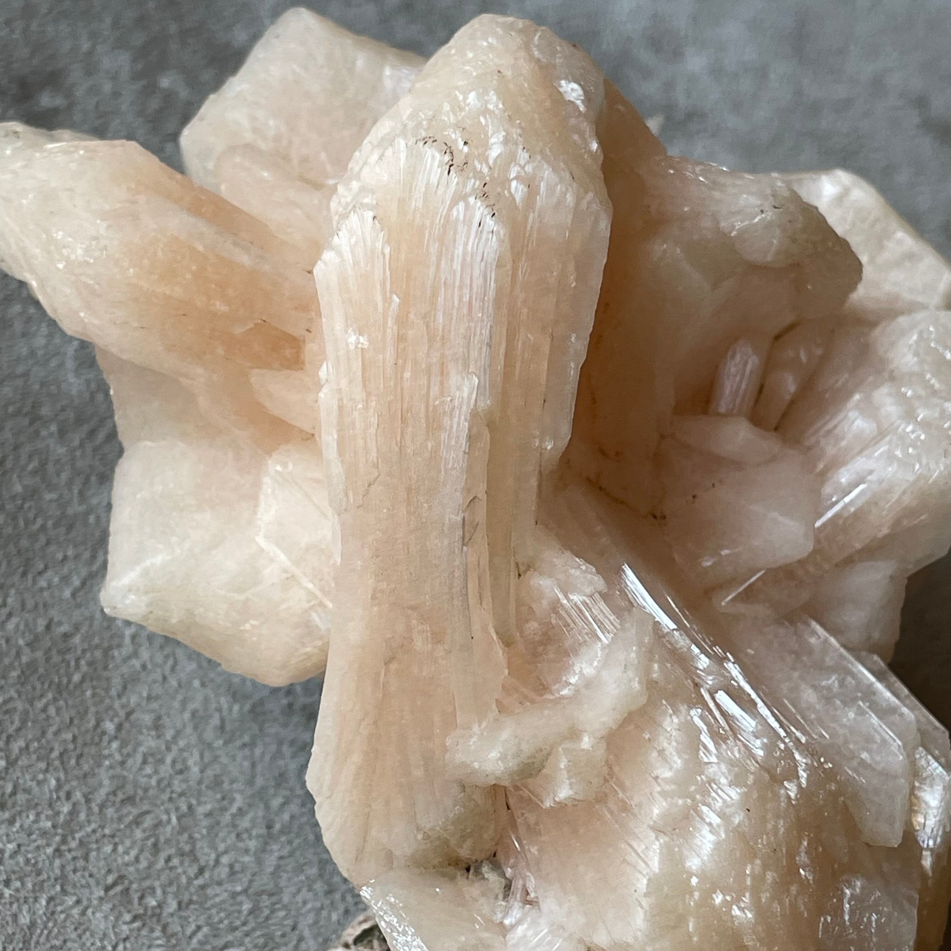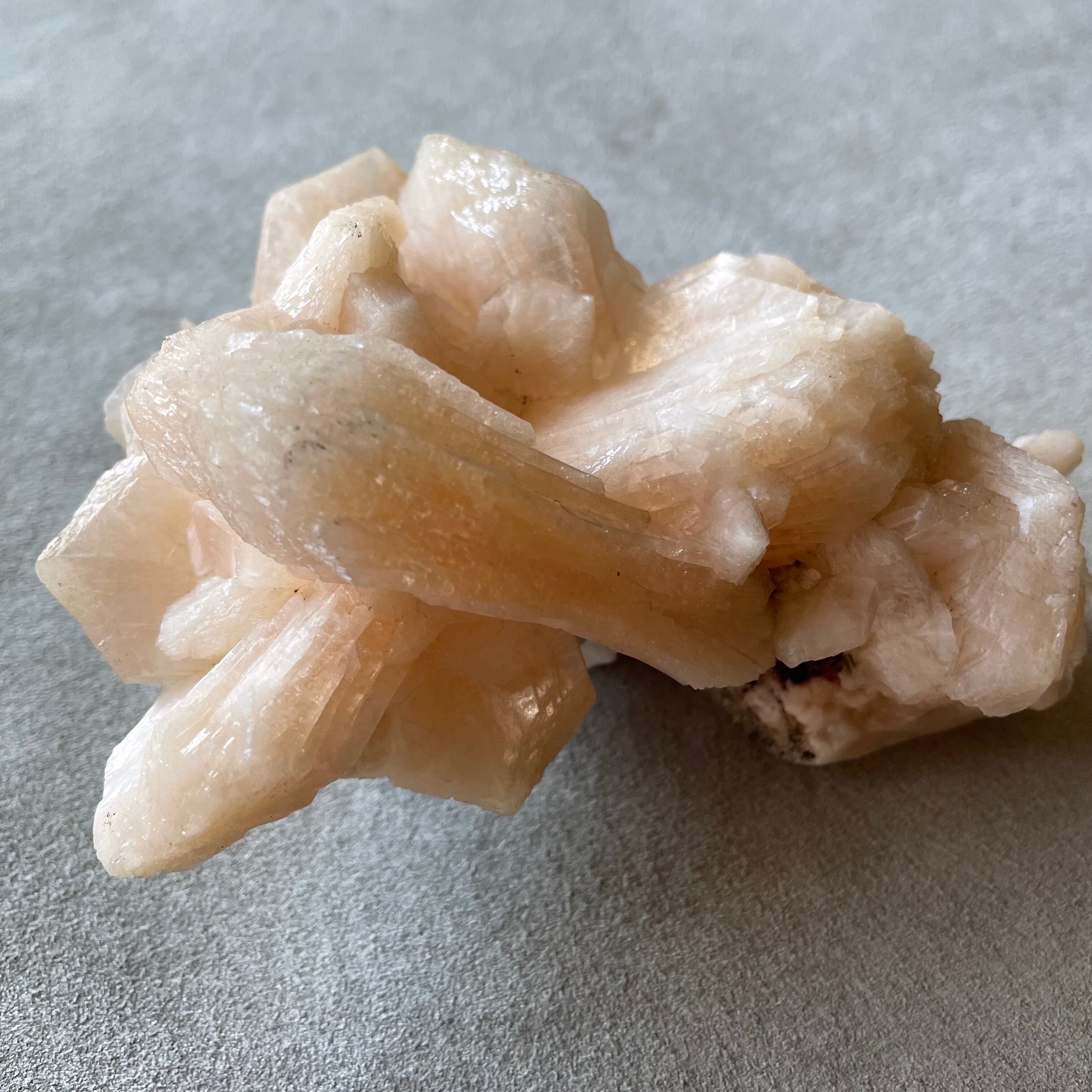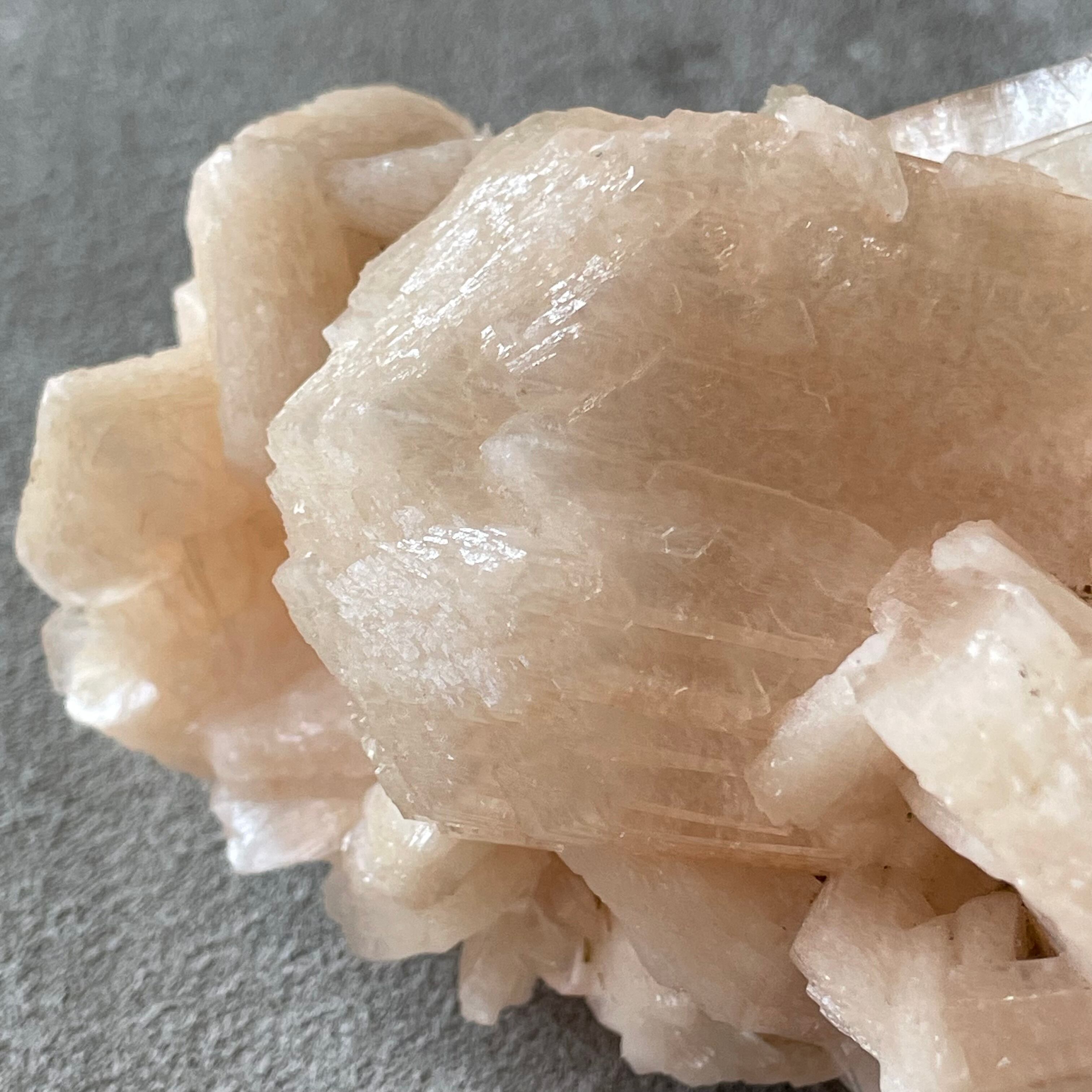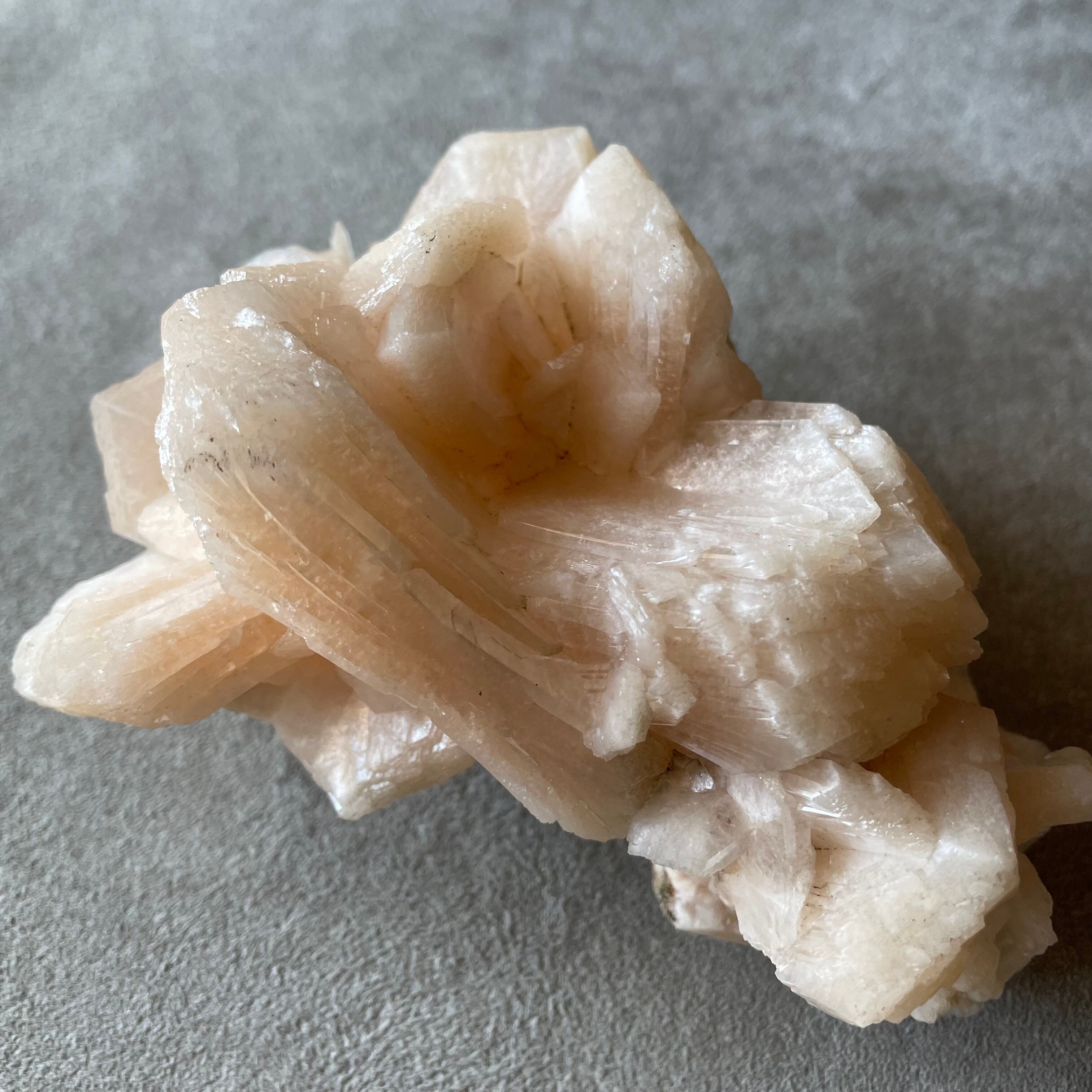 玄武岩や花崗岩などで形成され薄い板柱状の結晶が束のように重なって扇型やリボン型の形が特徴でアポフィライトと一緒に産出されることが多い石でもあります。