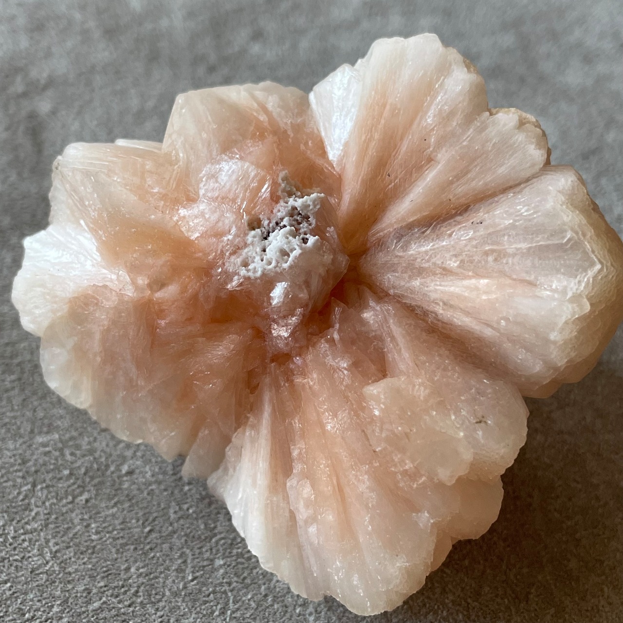 柔らかな色合いと真珠のような光沢が美しいスティルバイトのクラスターです。
