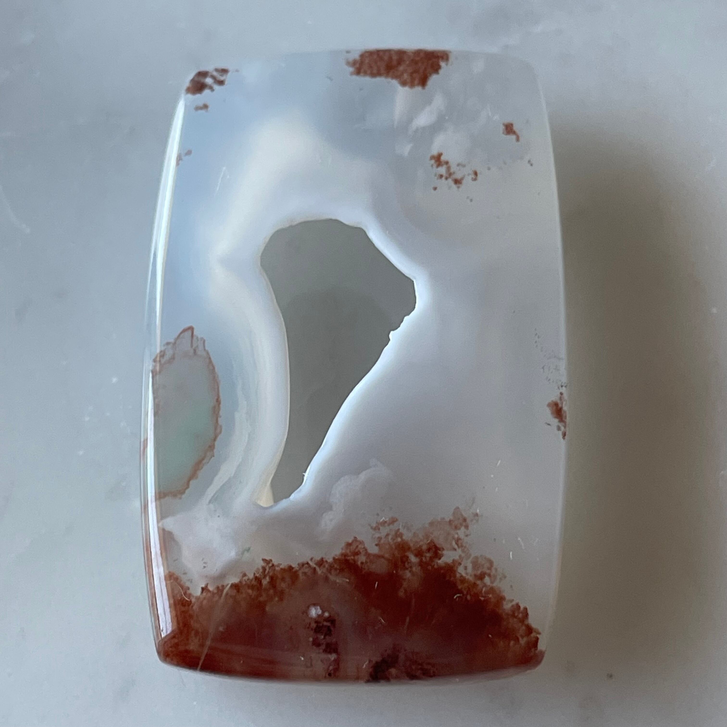 半透明でぼんやりと浮かび上がる模様が幻想的なアゲートです。
