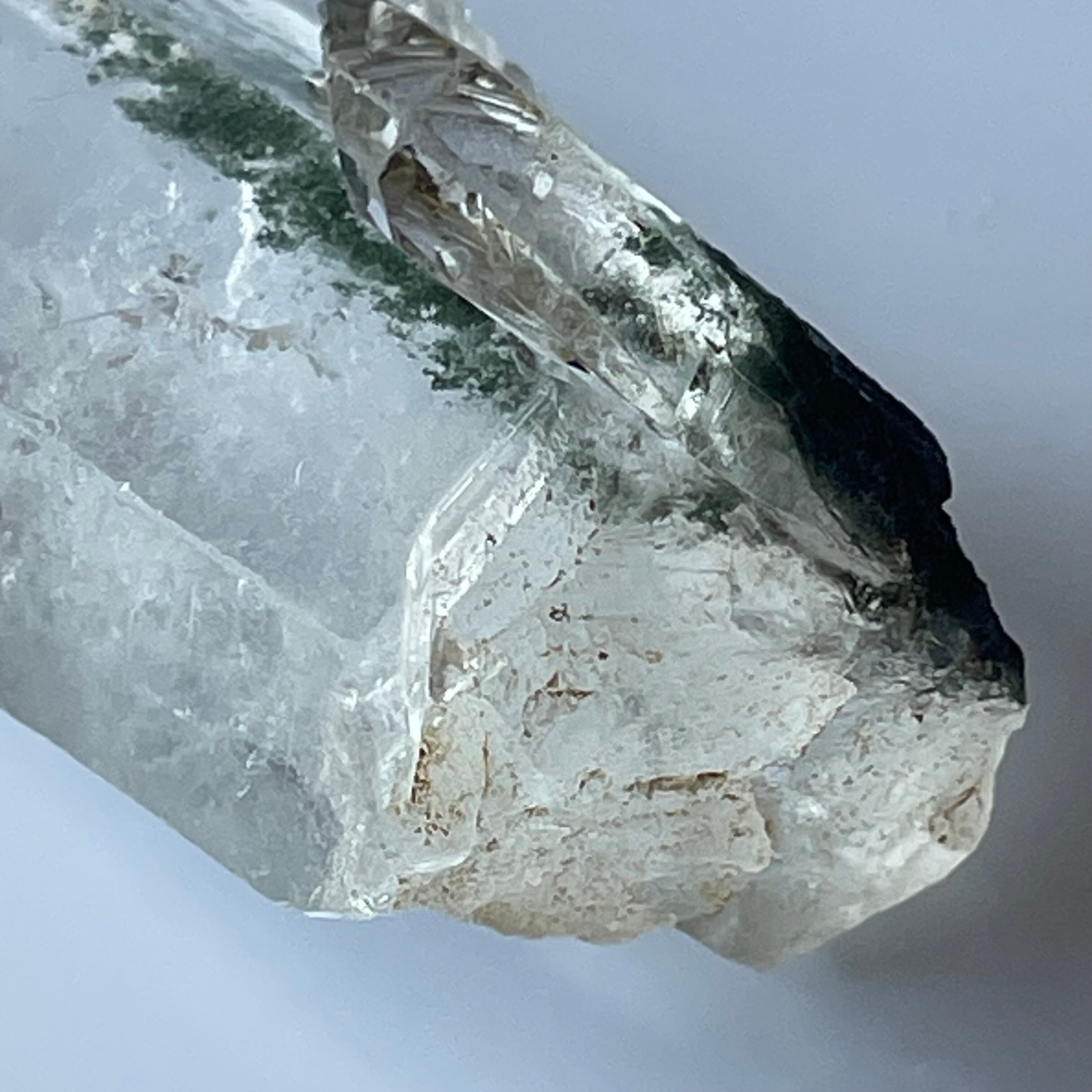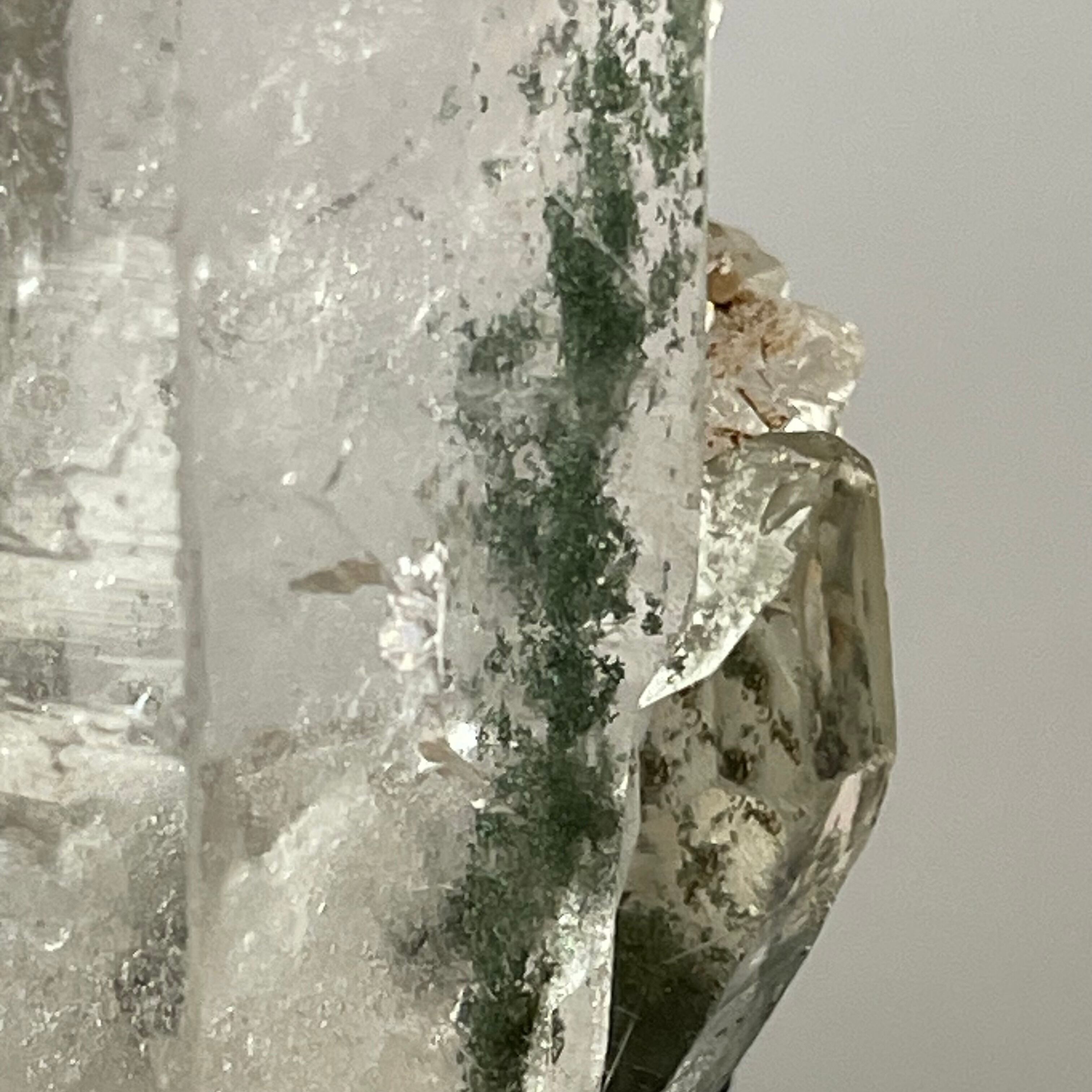 見る角度によって透明度の高いクリスタルとクローライトの広がりを楽しめます。