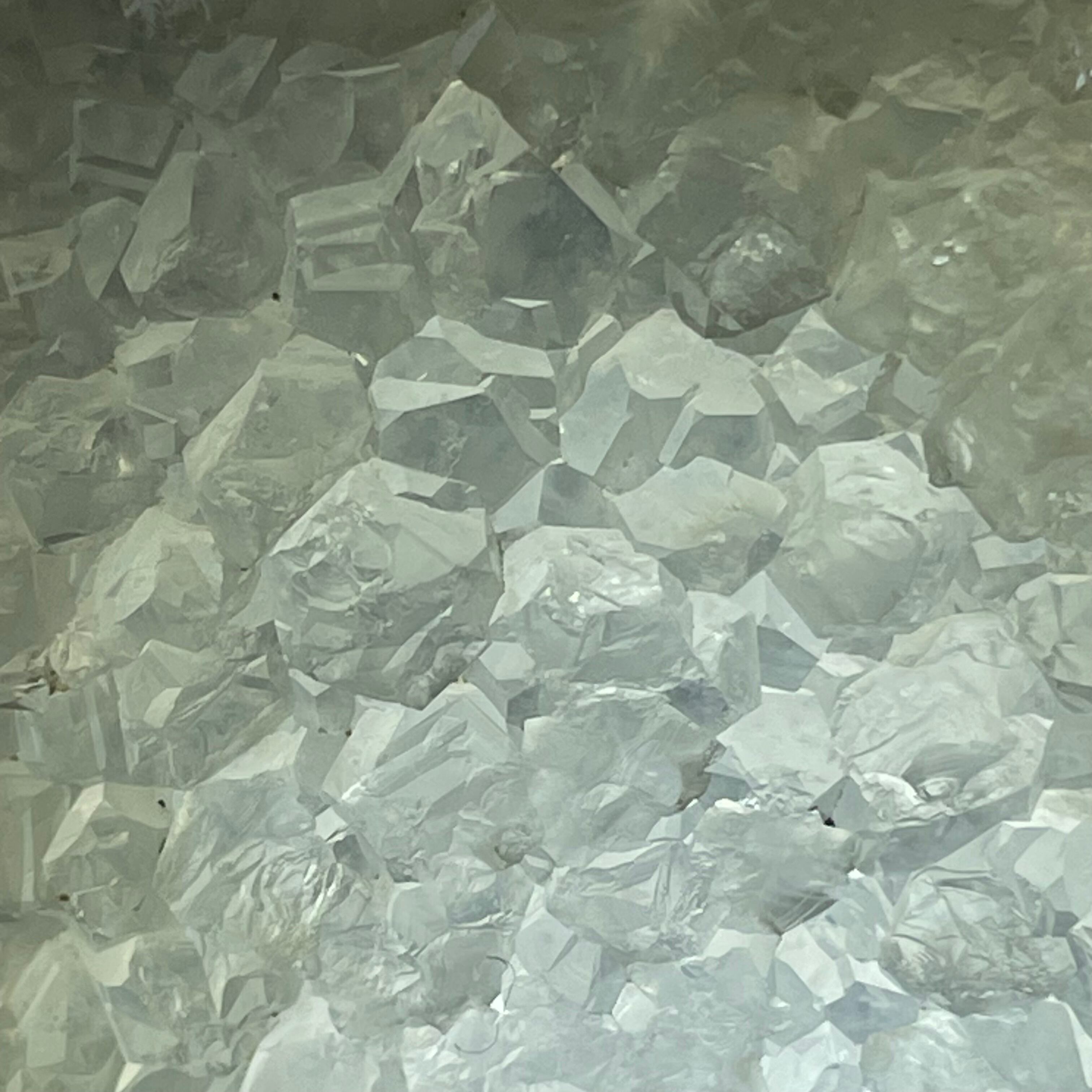 モスアゲートとジオード結晶のコントラストを生かして研磨をされていて、手で持つと両手分の大きさでずっしりとした重みがあります。