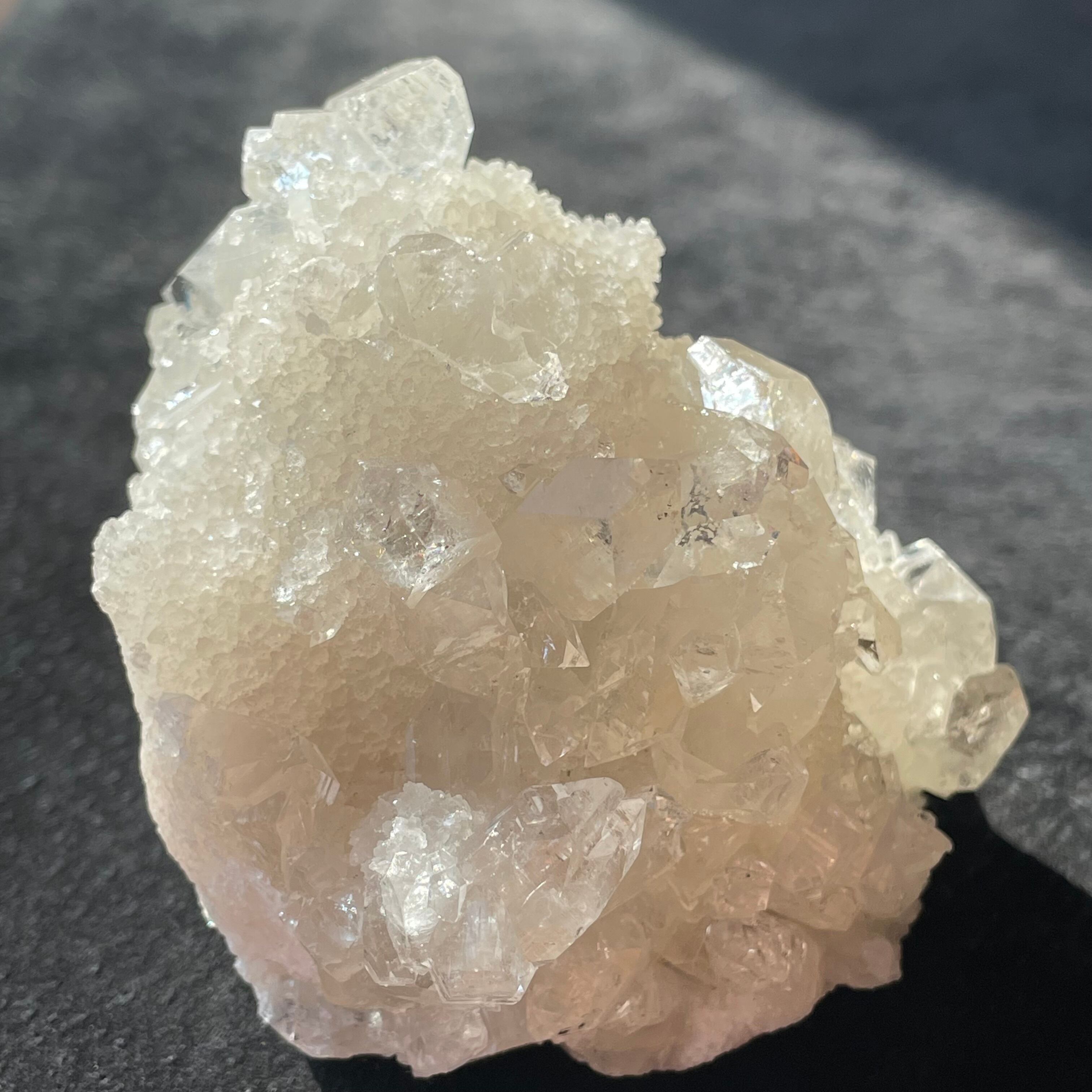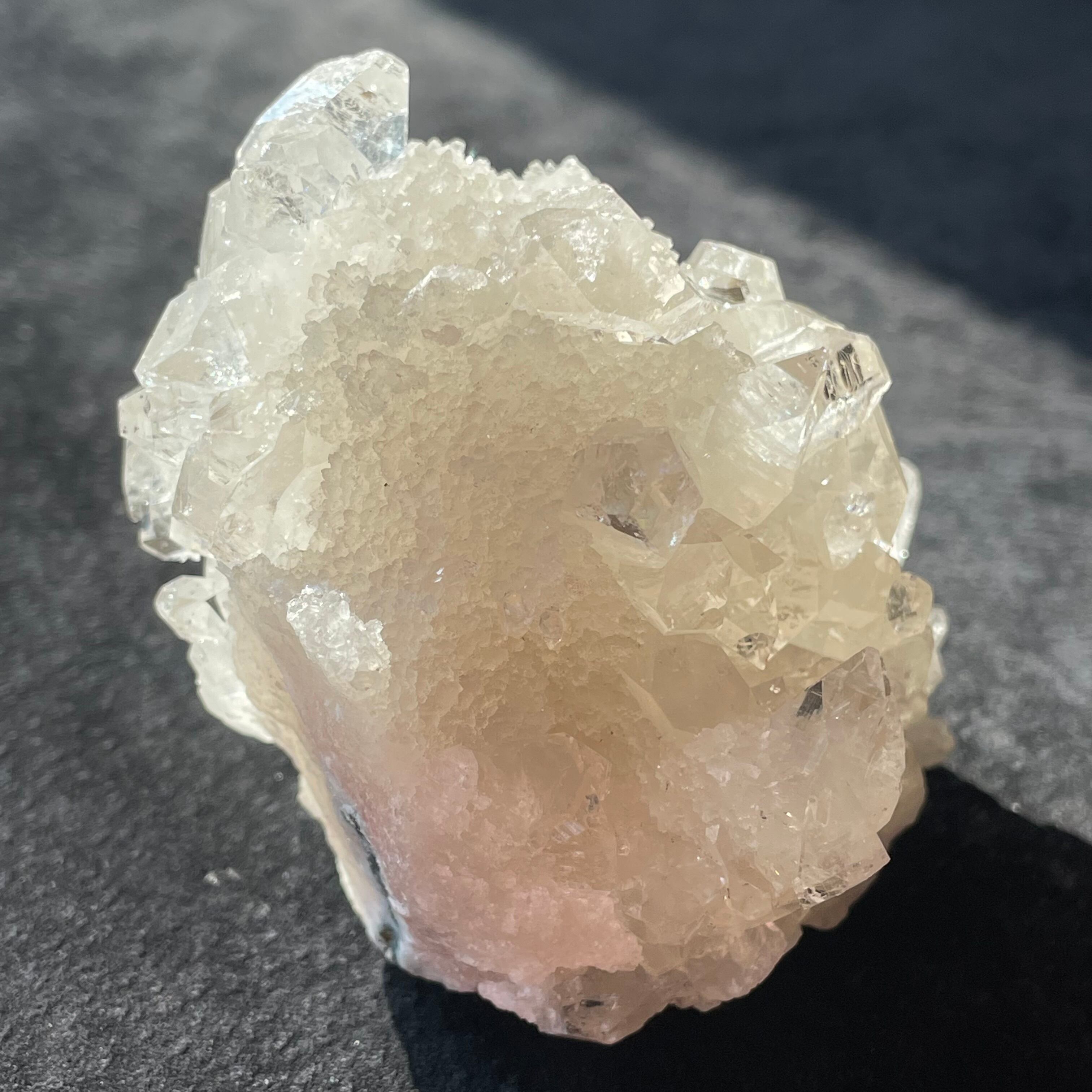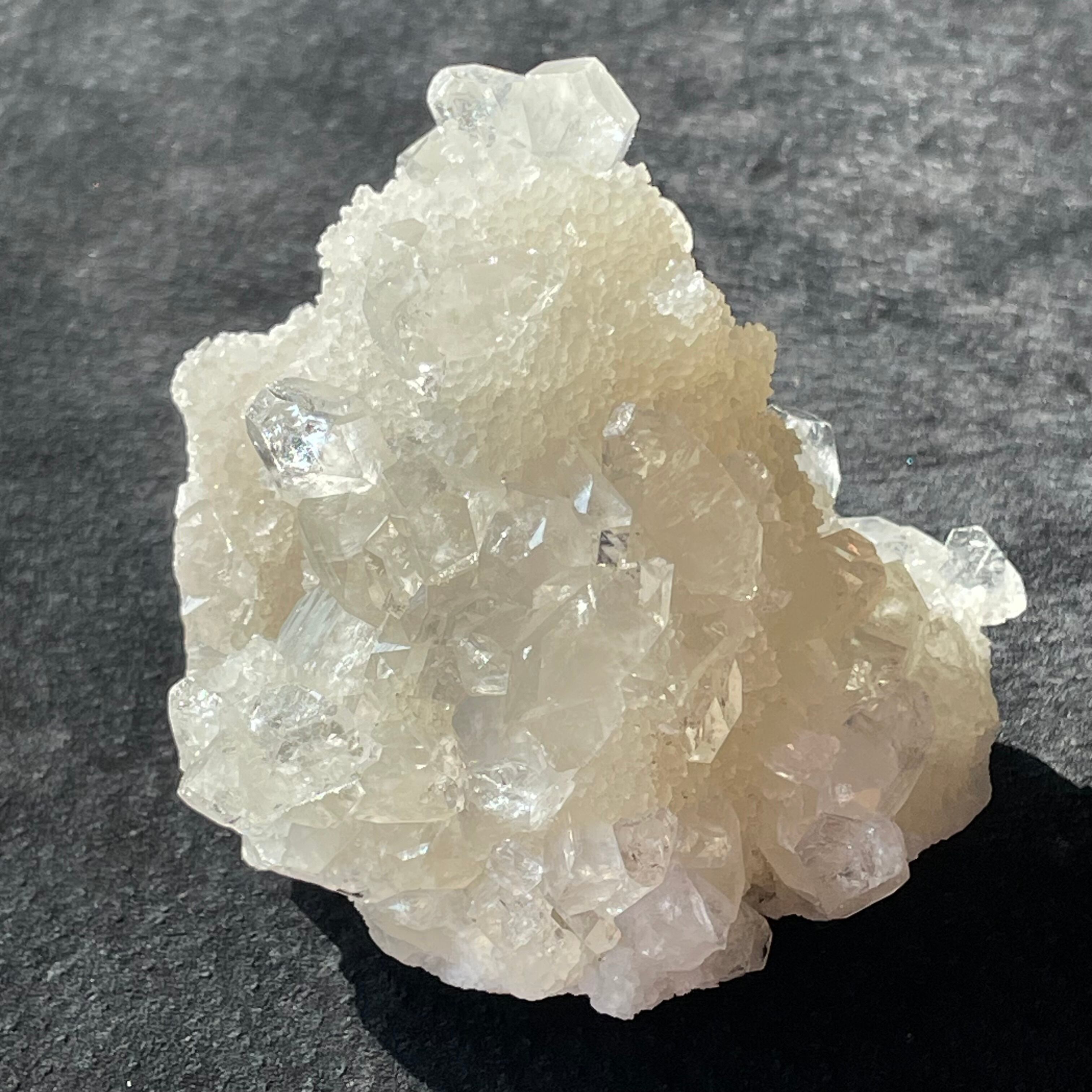 ドゥルージー状のアポフィライトにクリアなアポフィライトが成長しています。