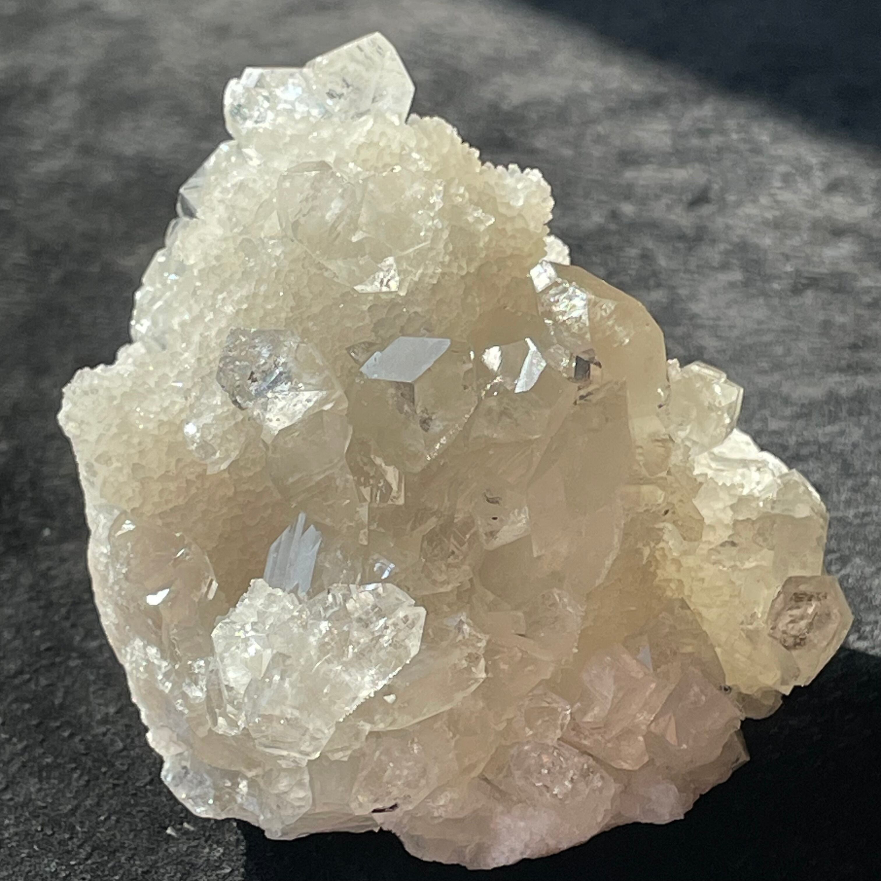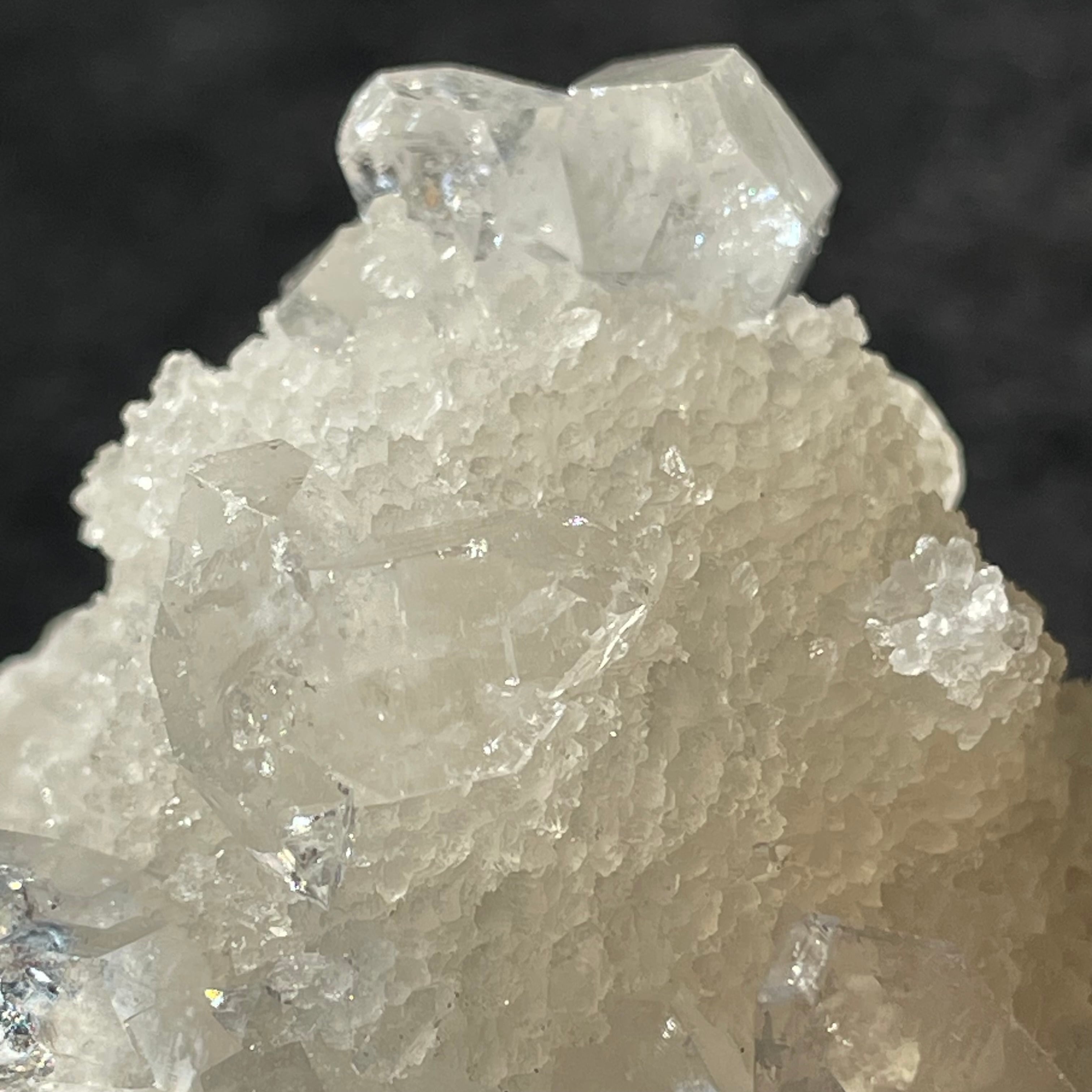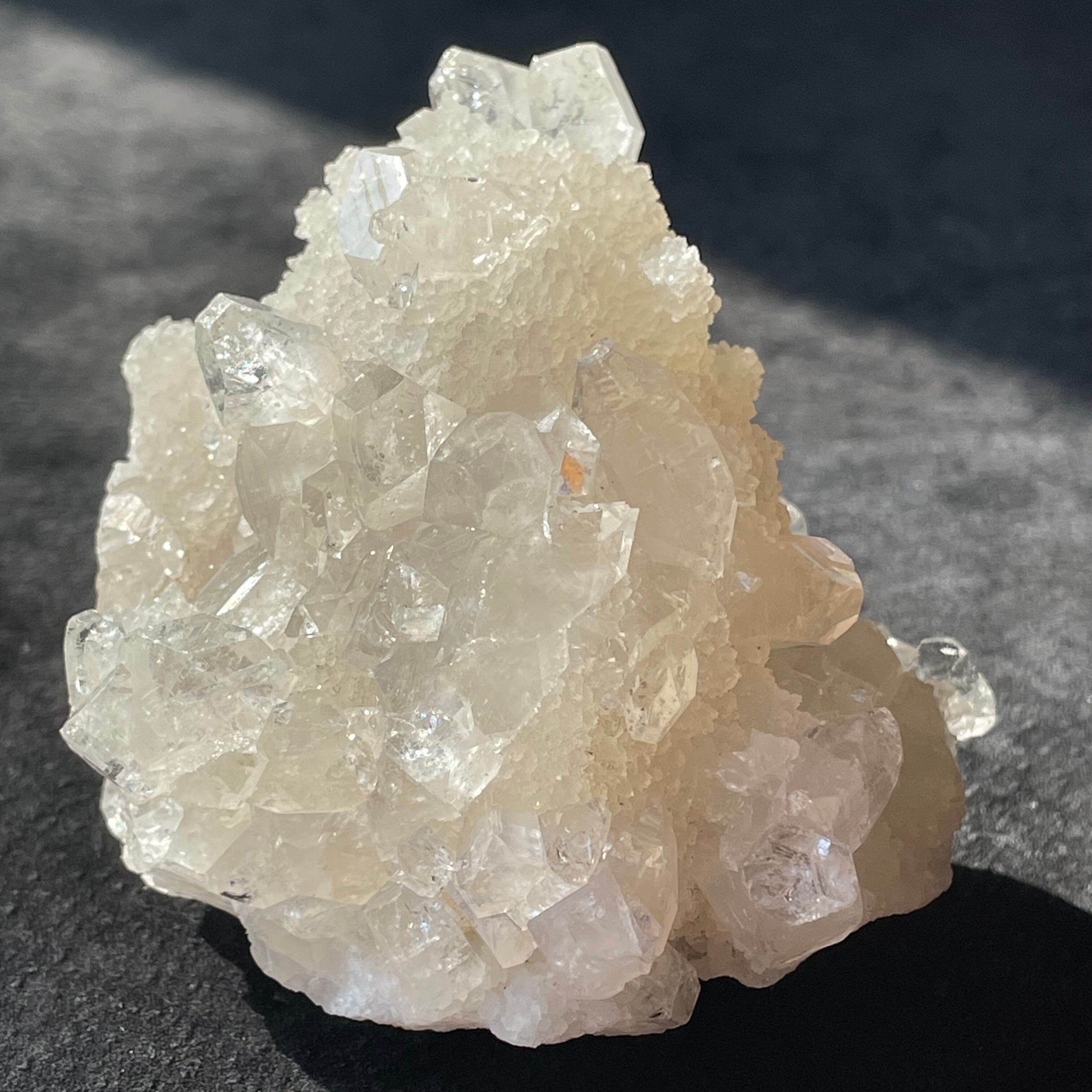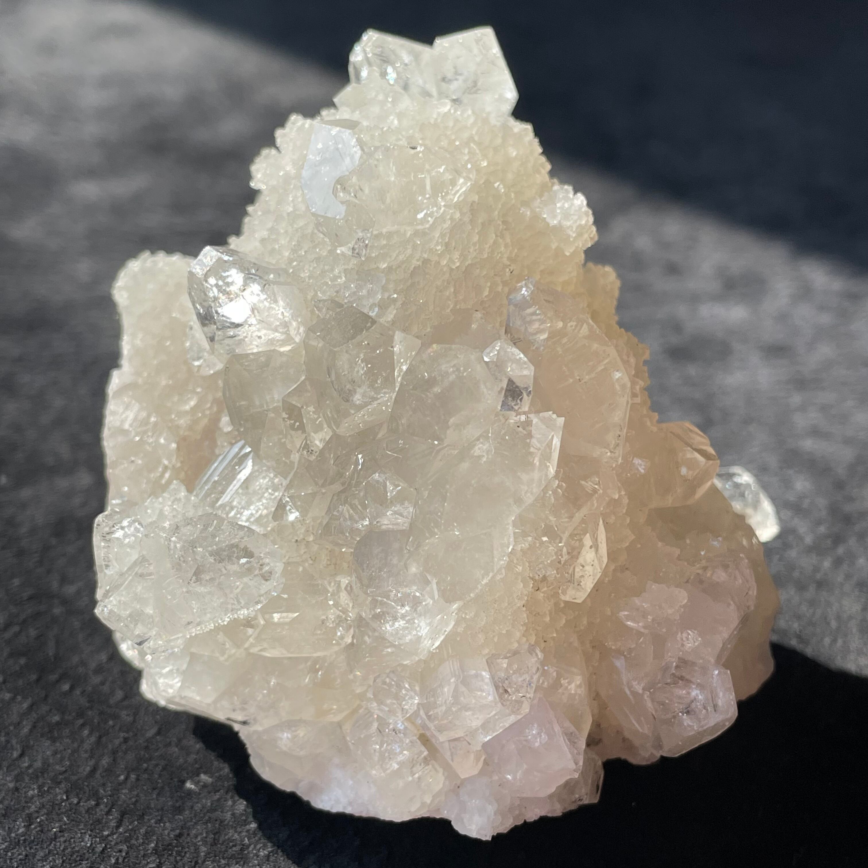 ドゥルージー状のアポフィライトにクリアなアポフィライトが成長しています。