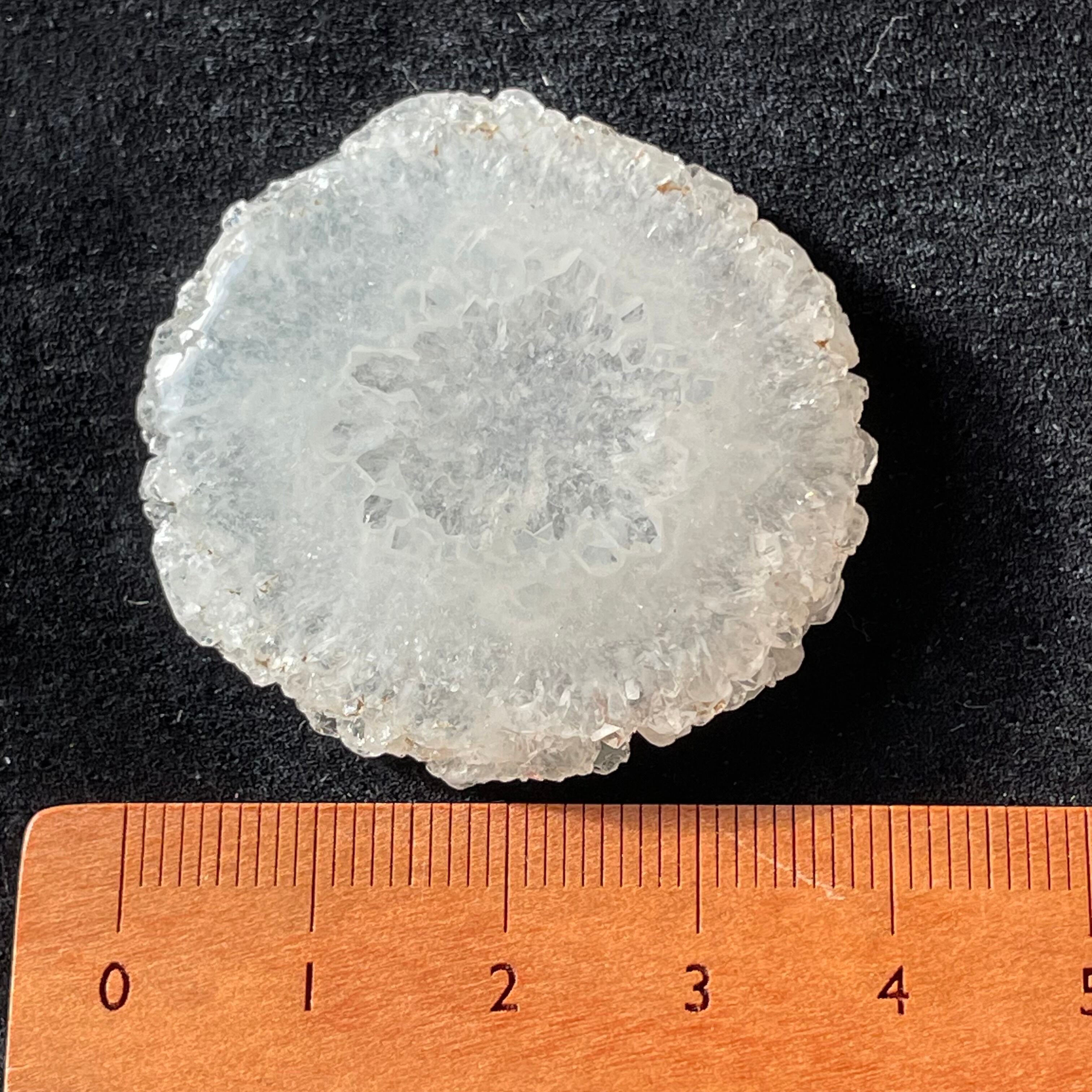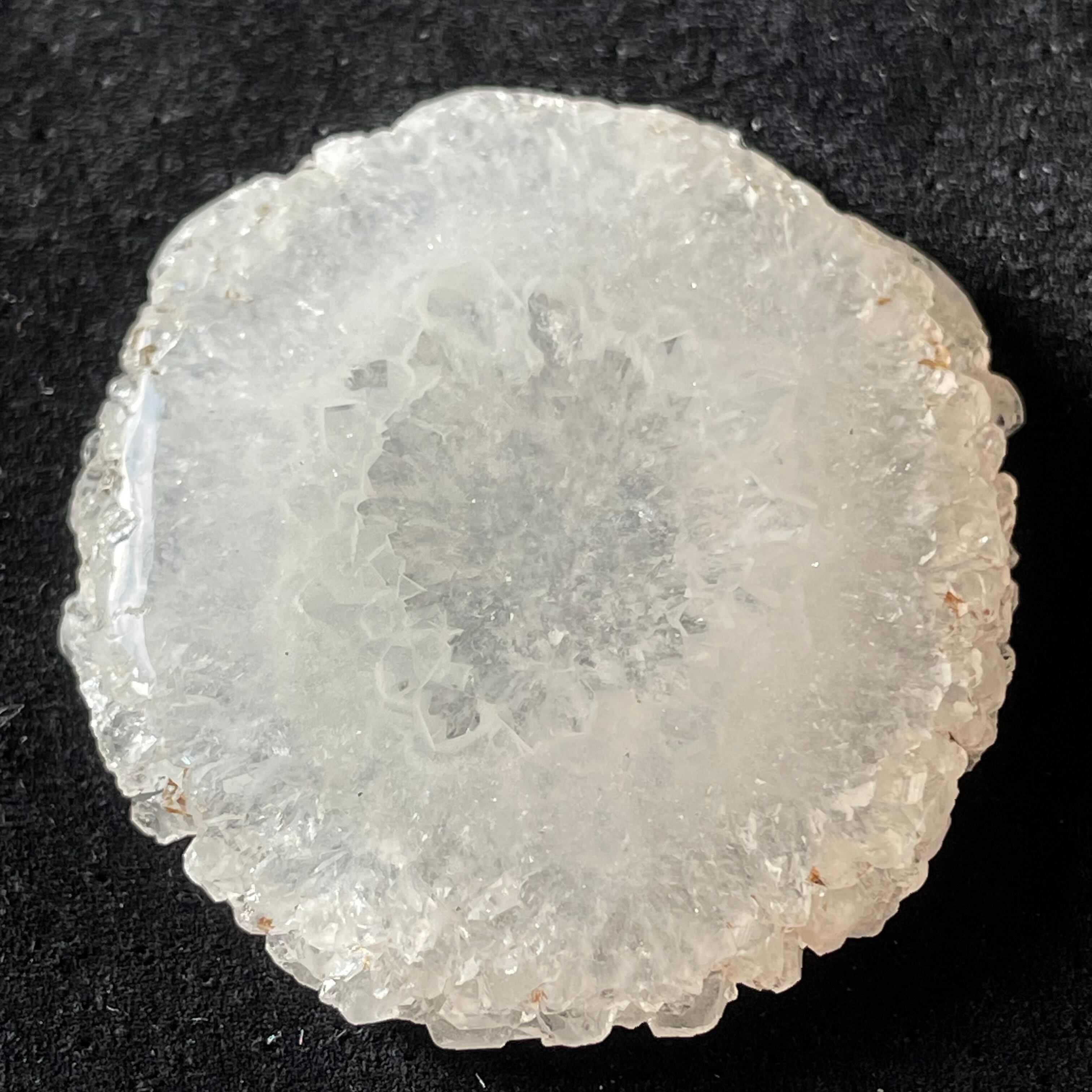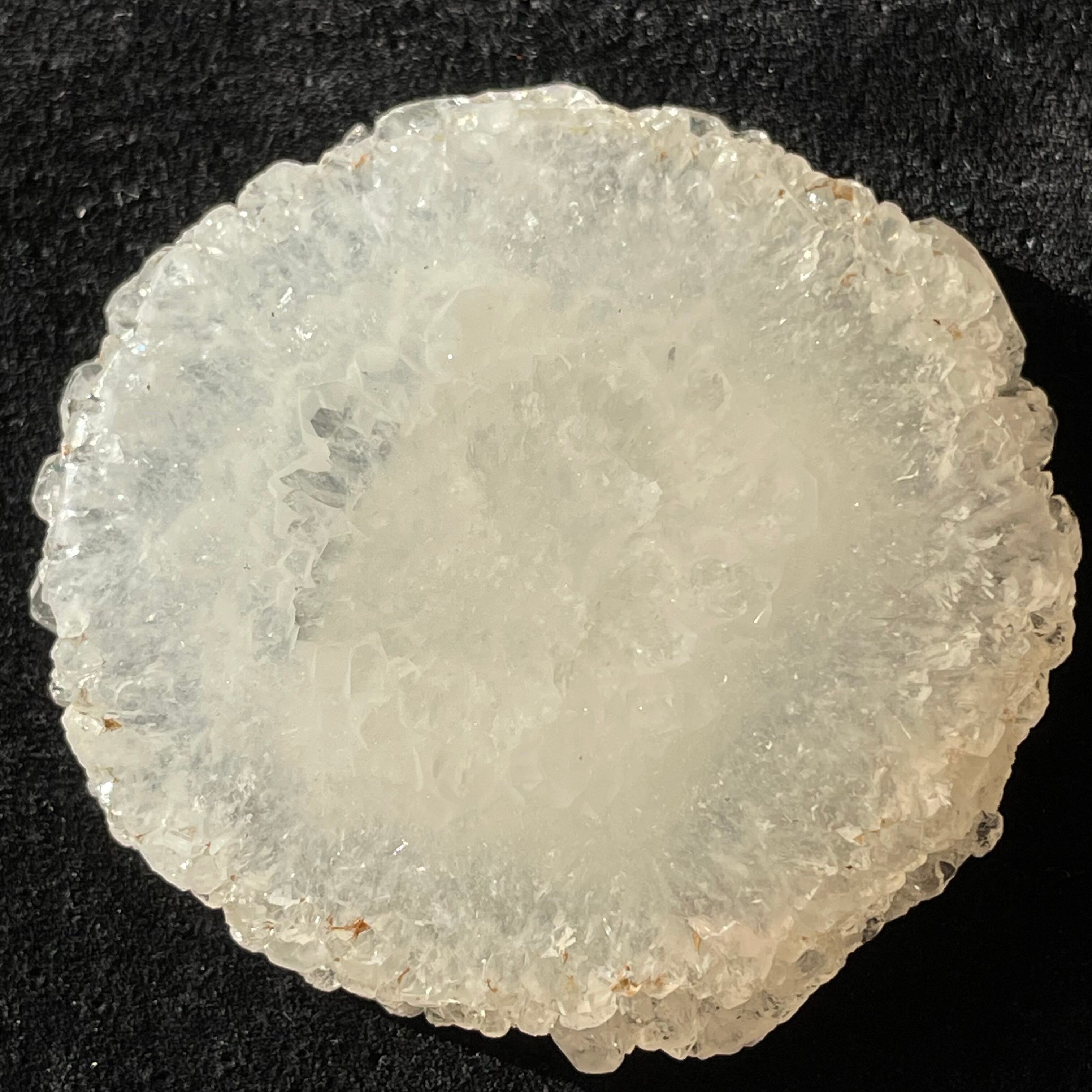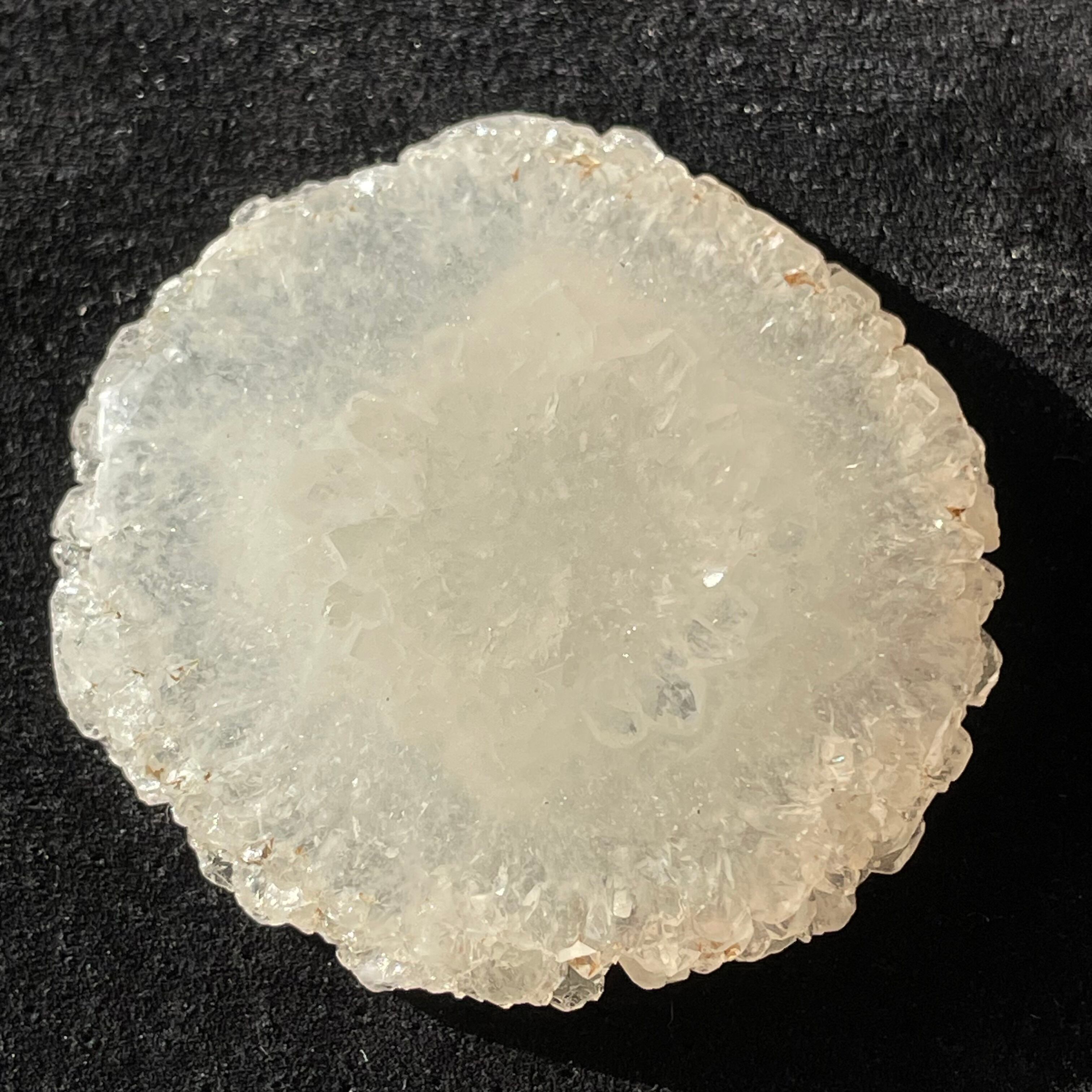 半透明、乳白色に結晶化した模様が美しいソーラークォーツです。スライス状ですが、片面はツルツルに磨かれているので光を当てると結晶がキラキラ輝いてとても綺麗です。