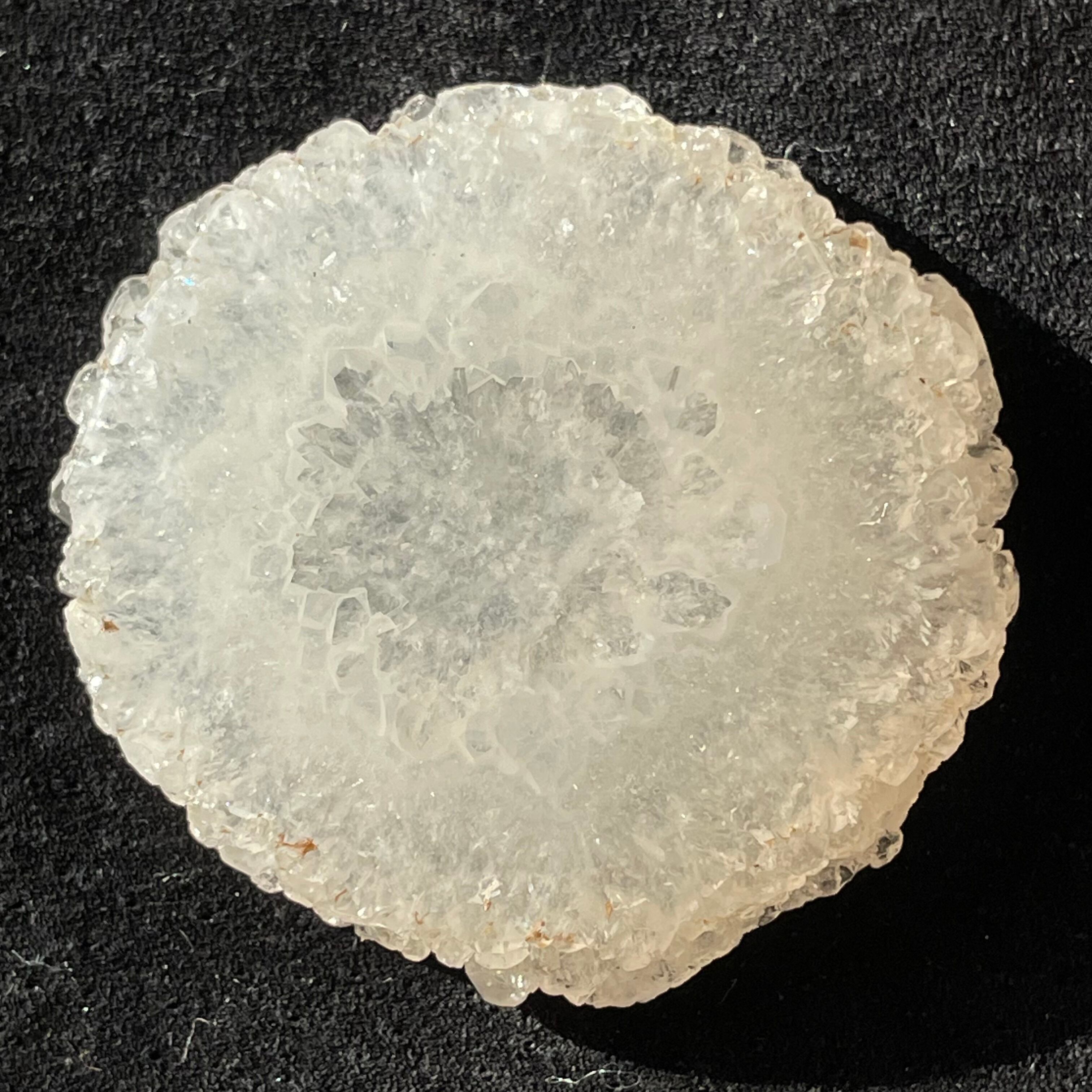 ソーラークォーツとはアゲートを核にクリスタルが放射線状に成長したもので、名前の由来は輪切りにすると太陽光線のように見えることからソーラークォーツと呼ばれています。その形を生かしてペンダントトップやジュエリーにも利用されています。