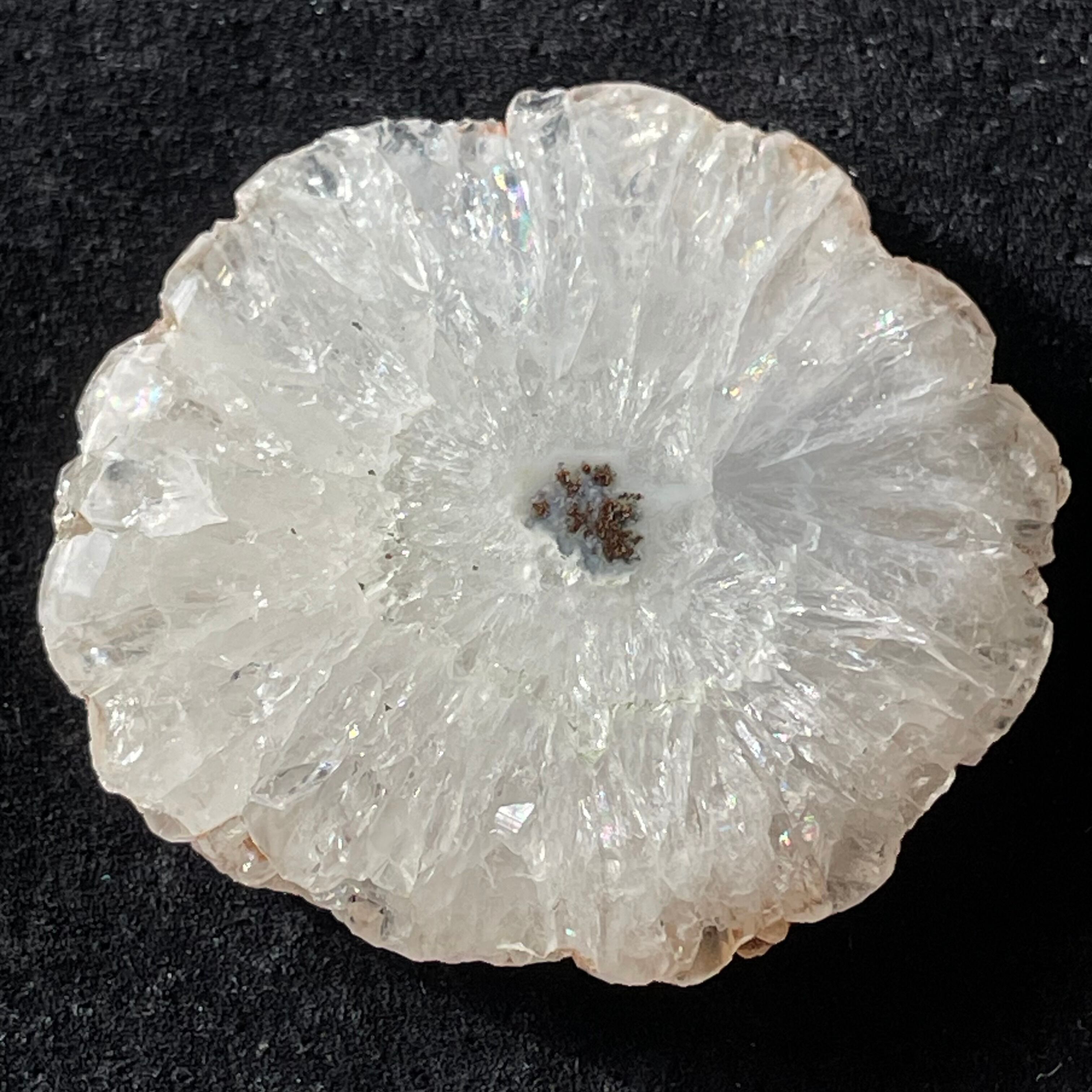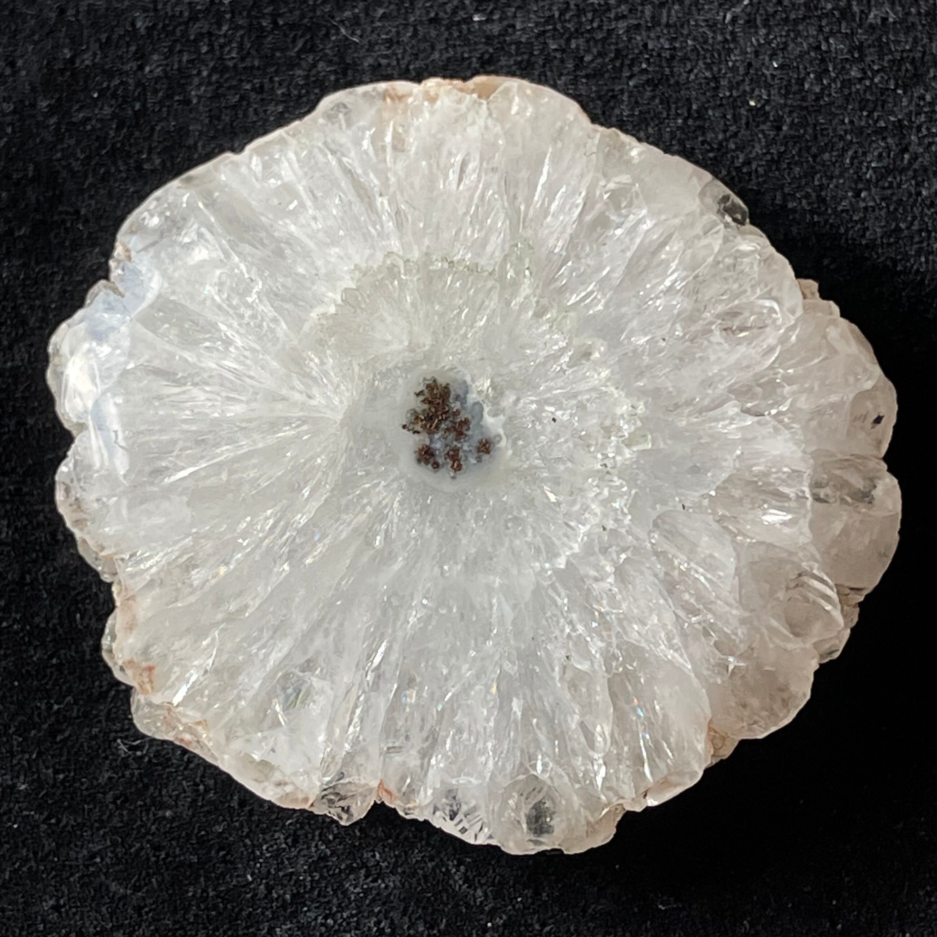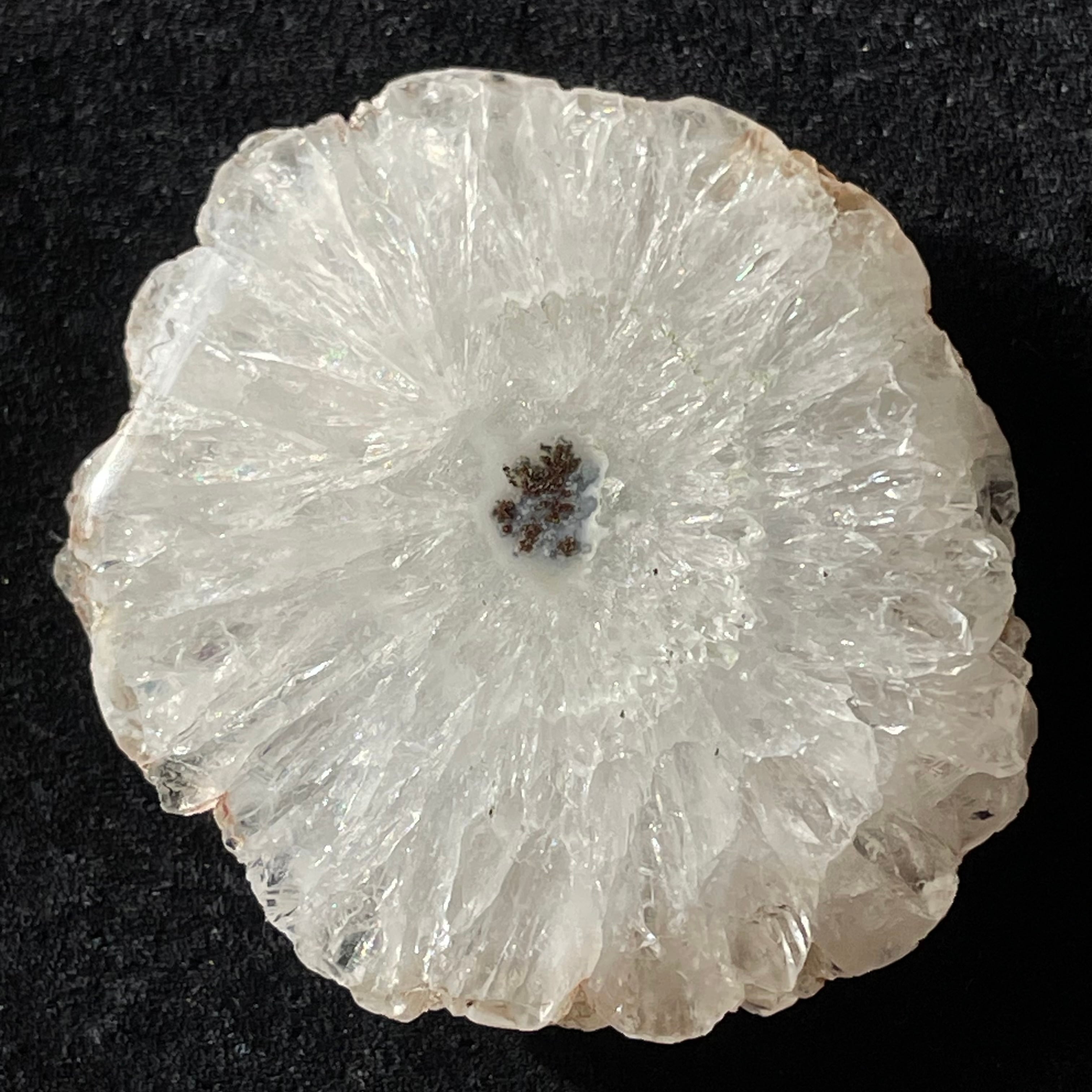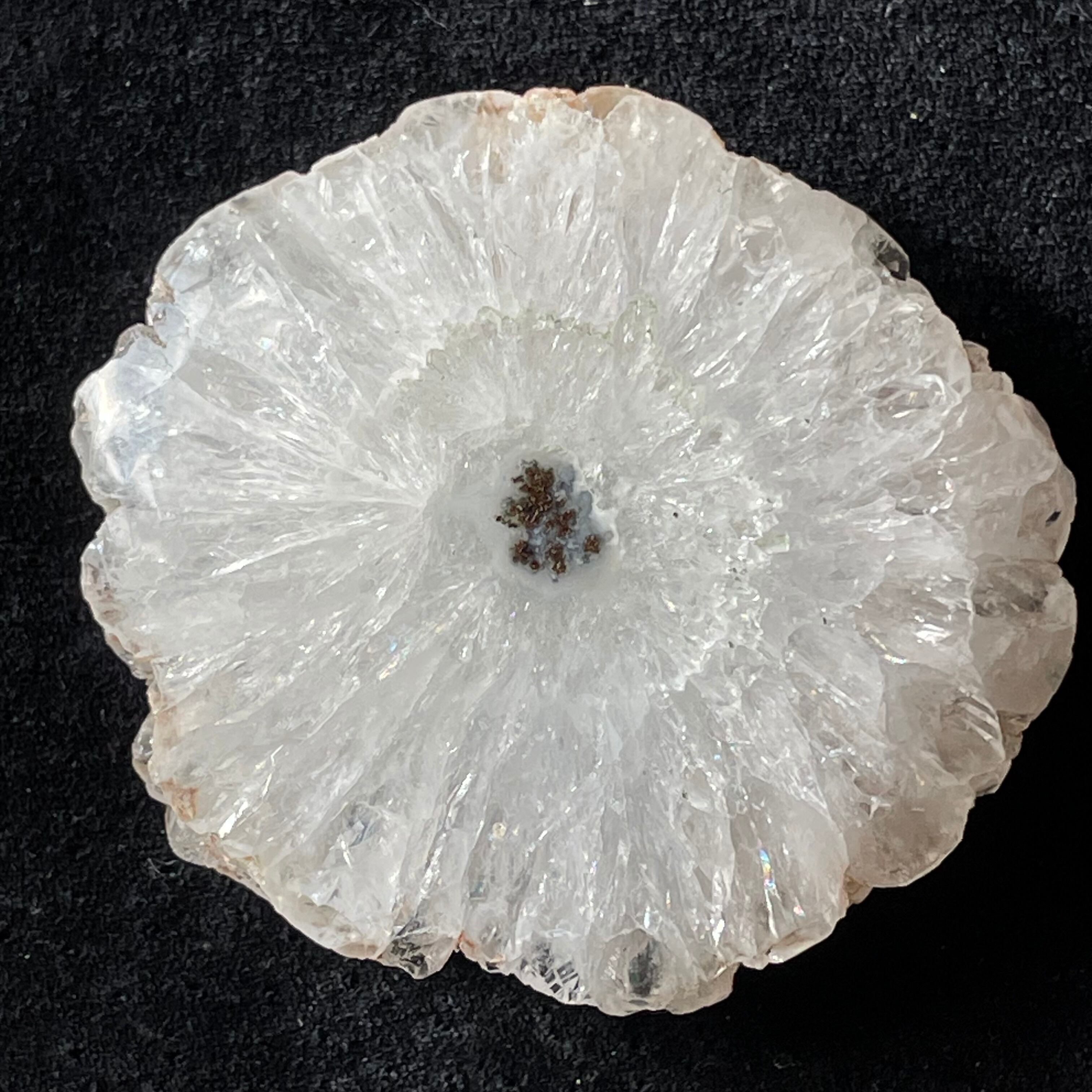 スライス状ですが、片面はツルツルに磨かれているので光を当てると結晶がキラキラ輝いてとても綺麗です。こちらは結晶がしっかり放射状に成長しています。