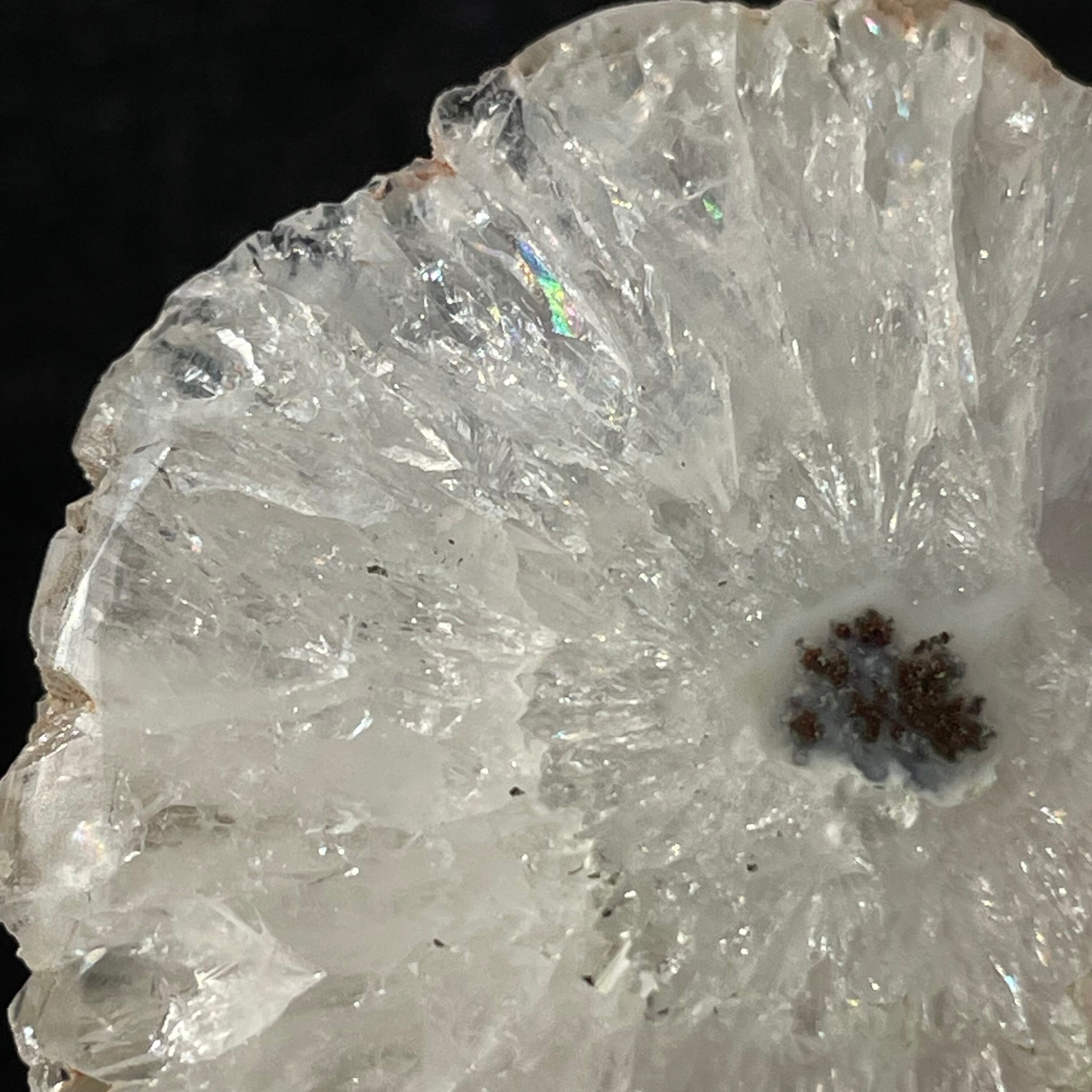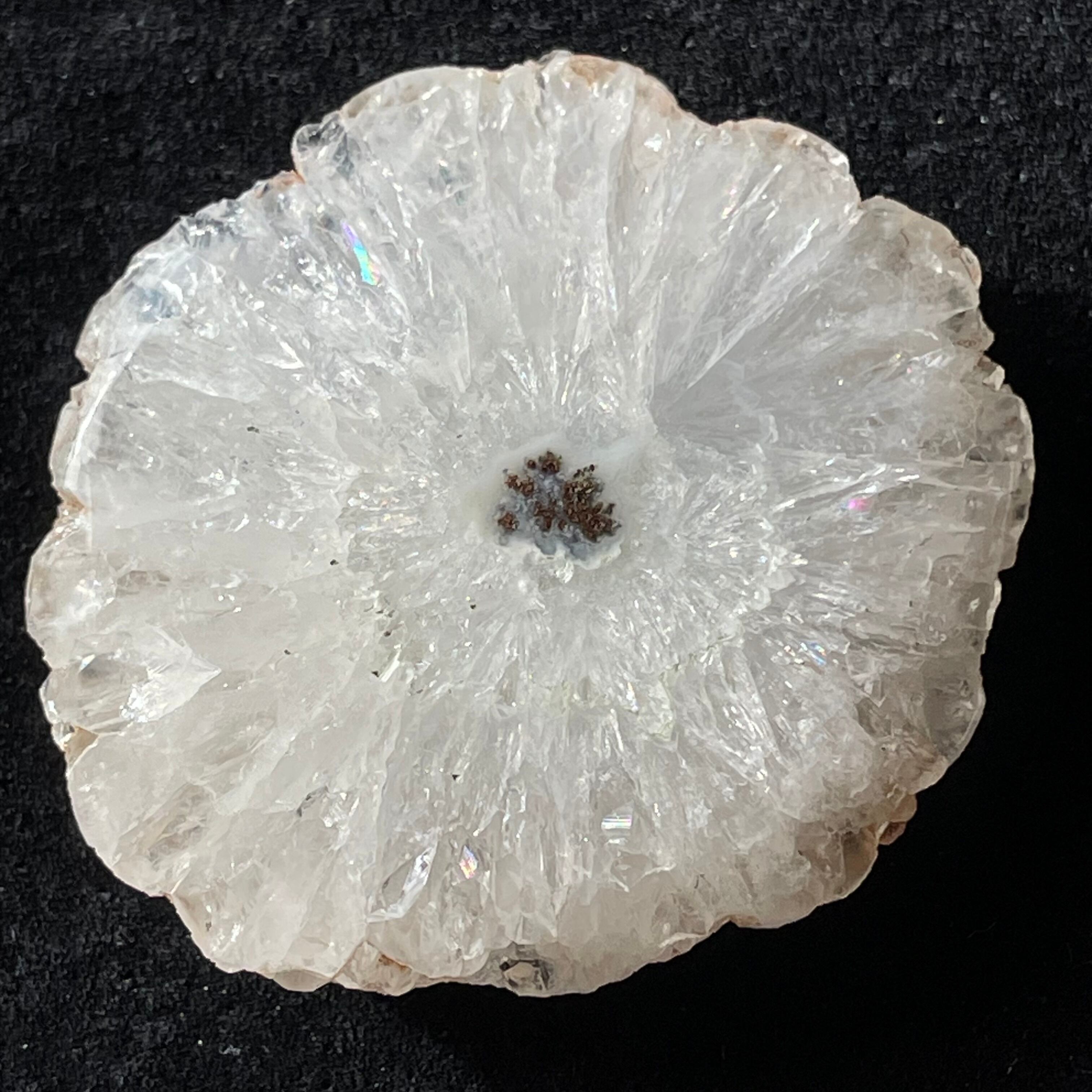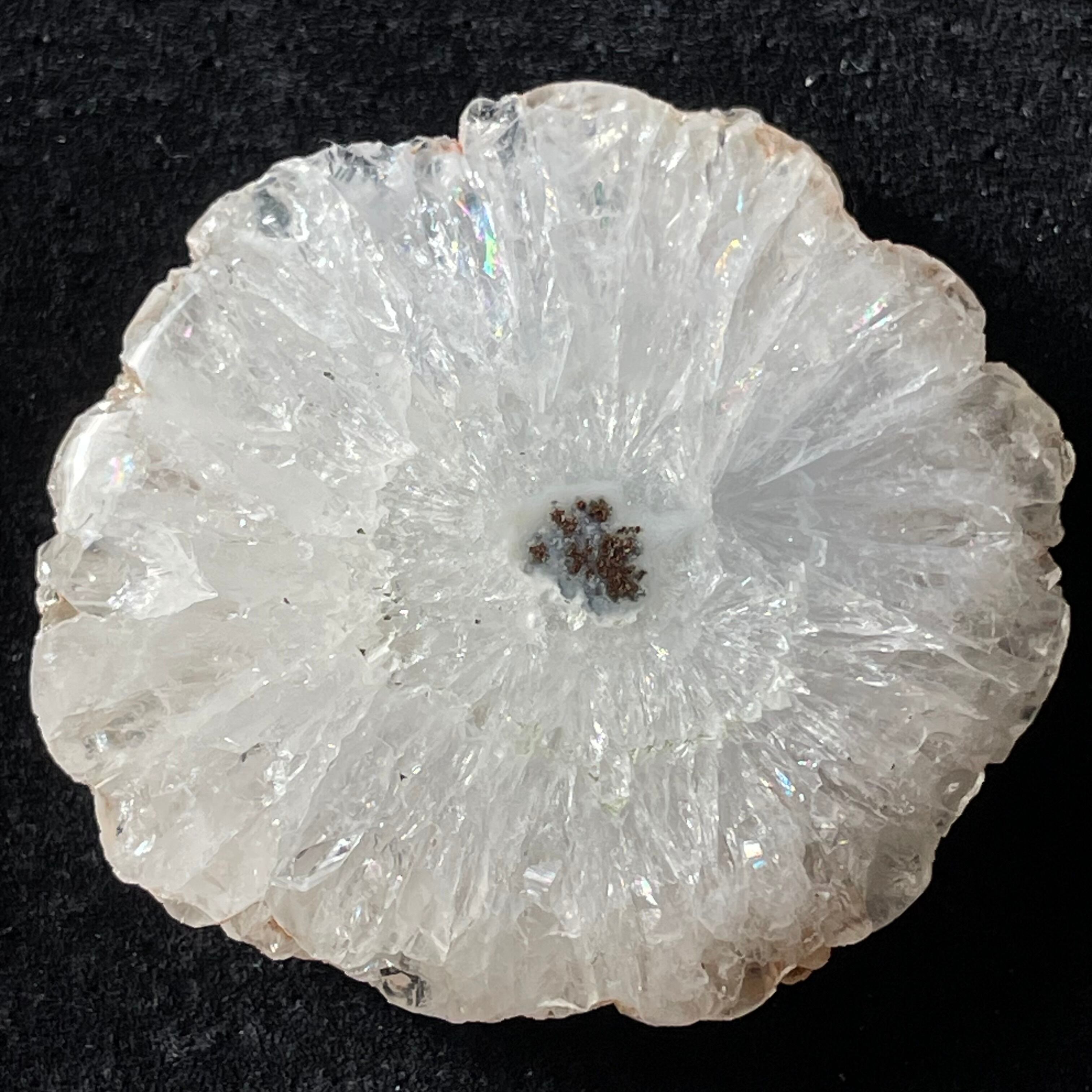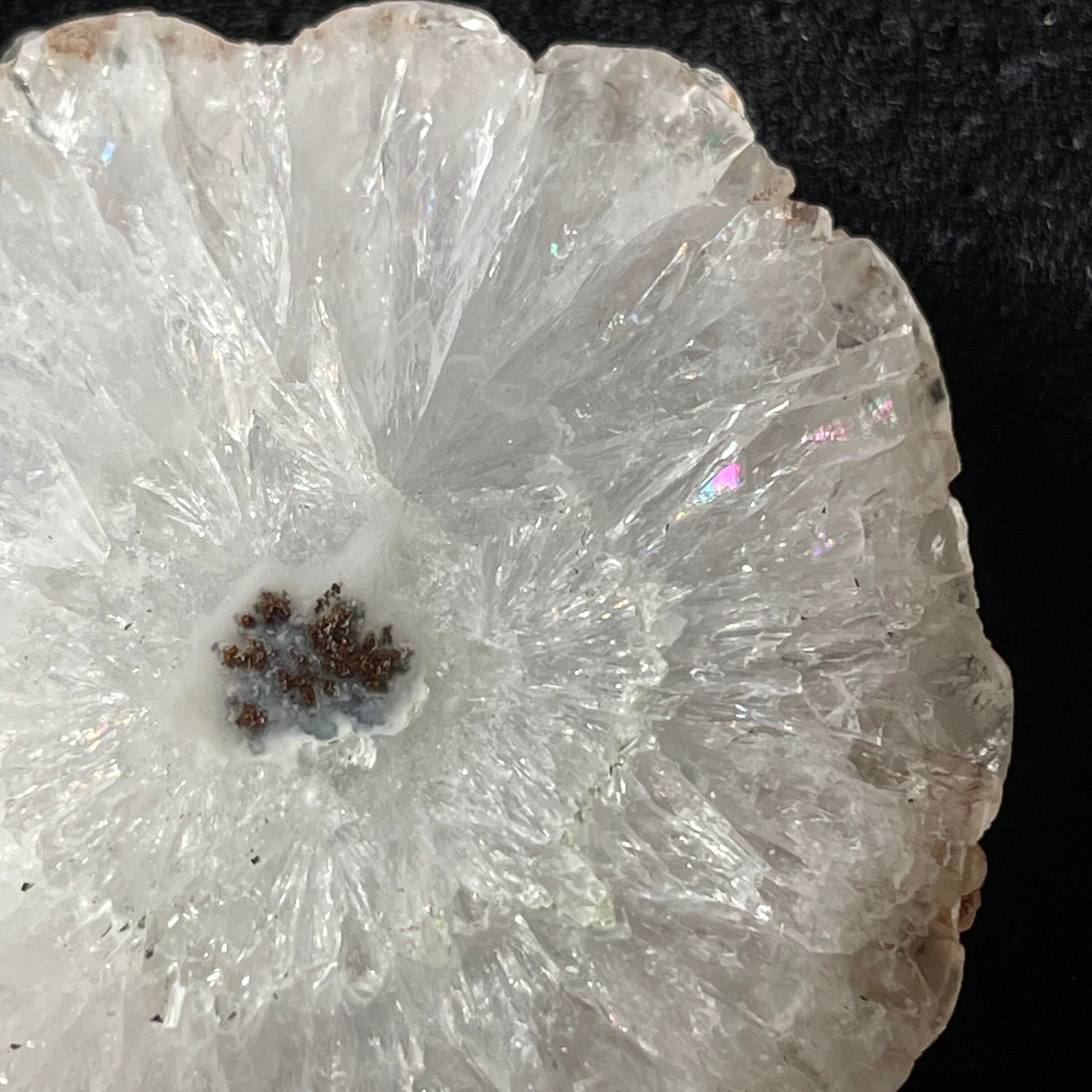 スライス状ですが、片面はツルツルに磨かれているので光を当てると結晶がキラキラ輝いてとても綺麗です。こちらは結晶がしっかり放射状に成長しています。
