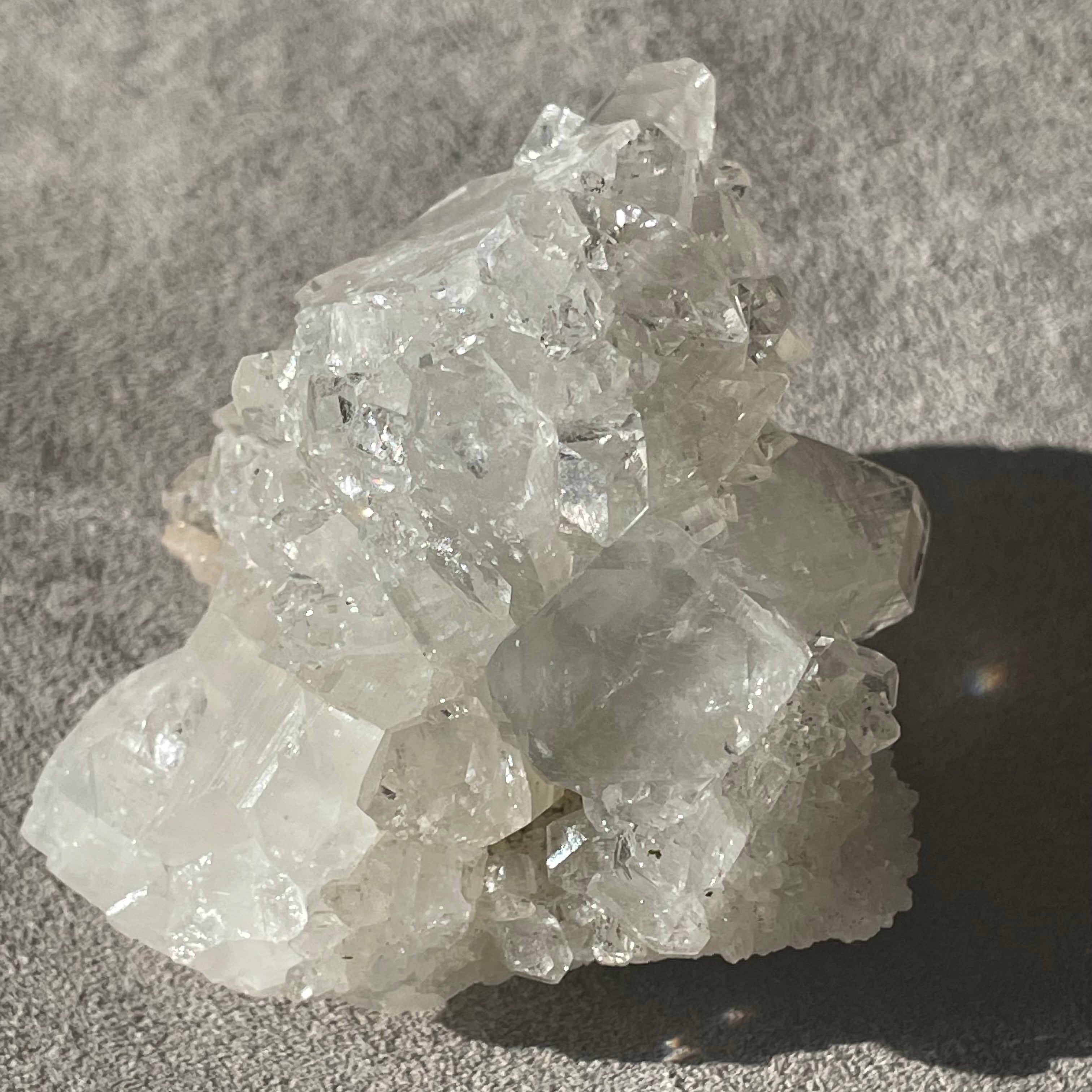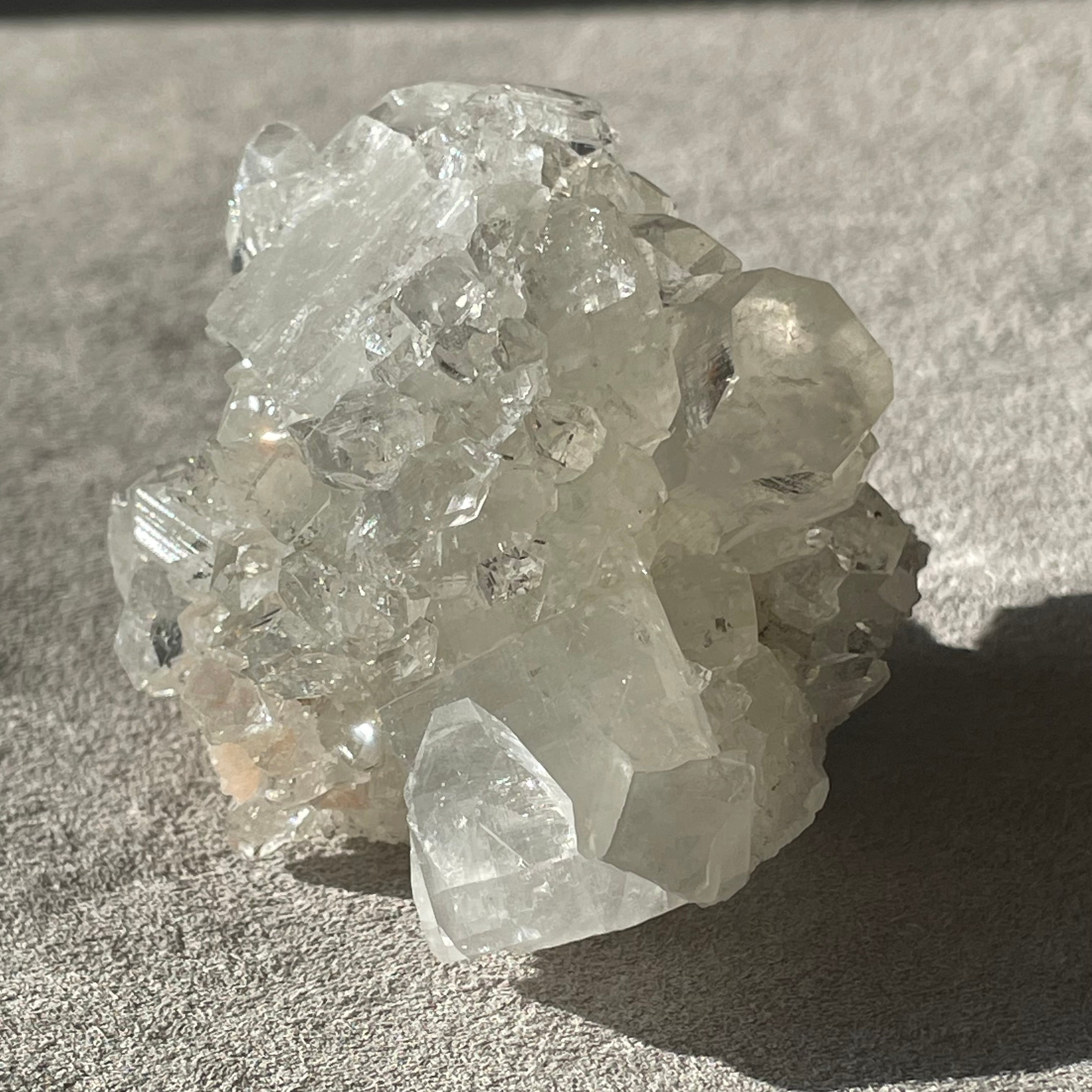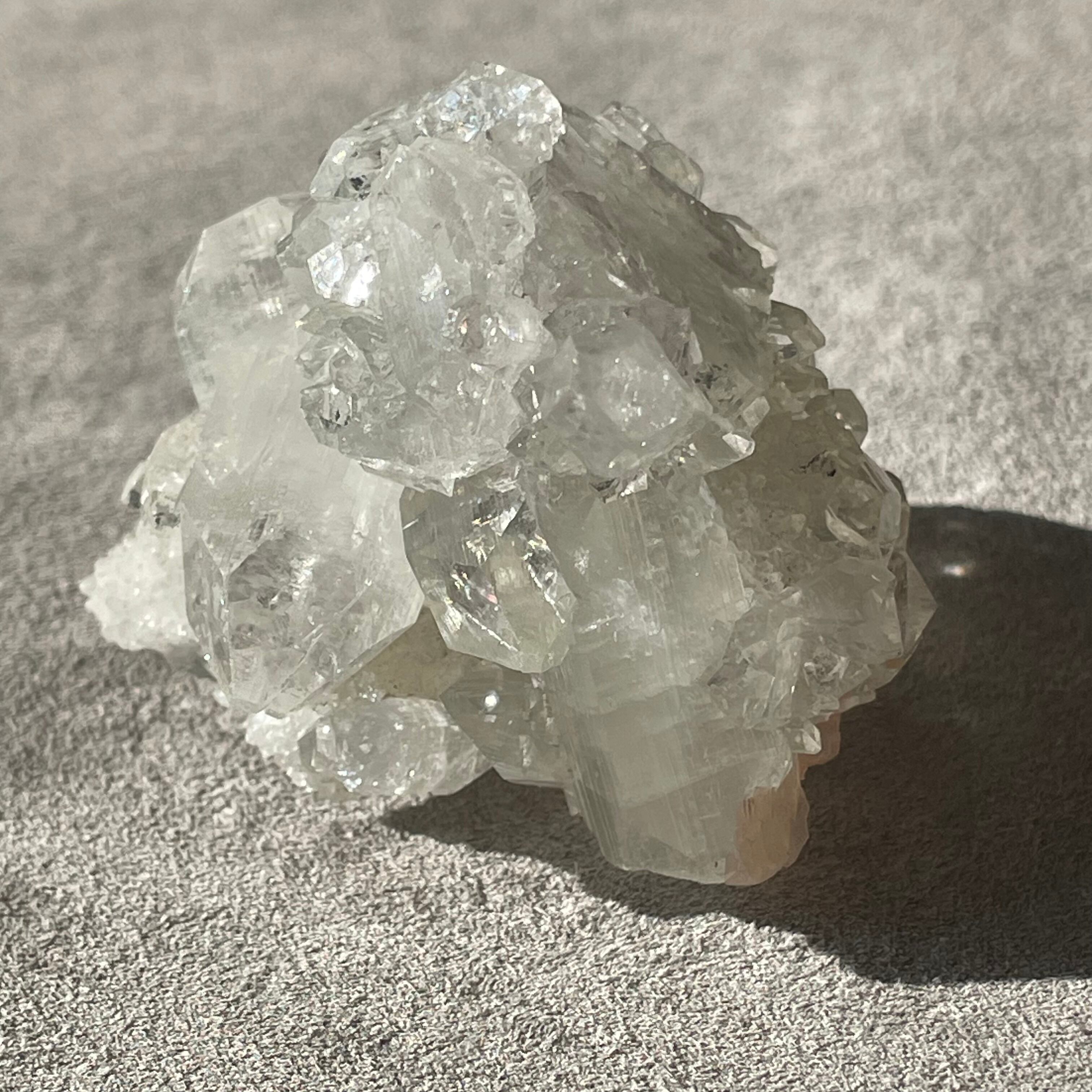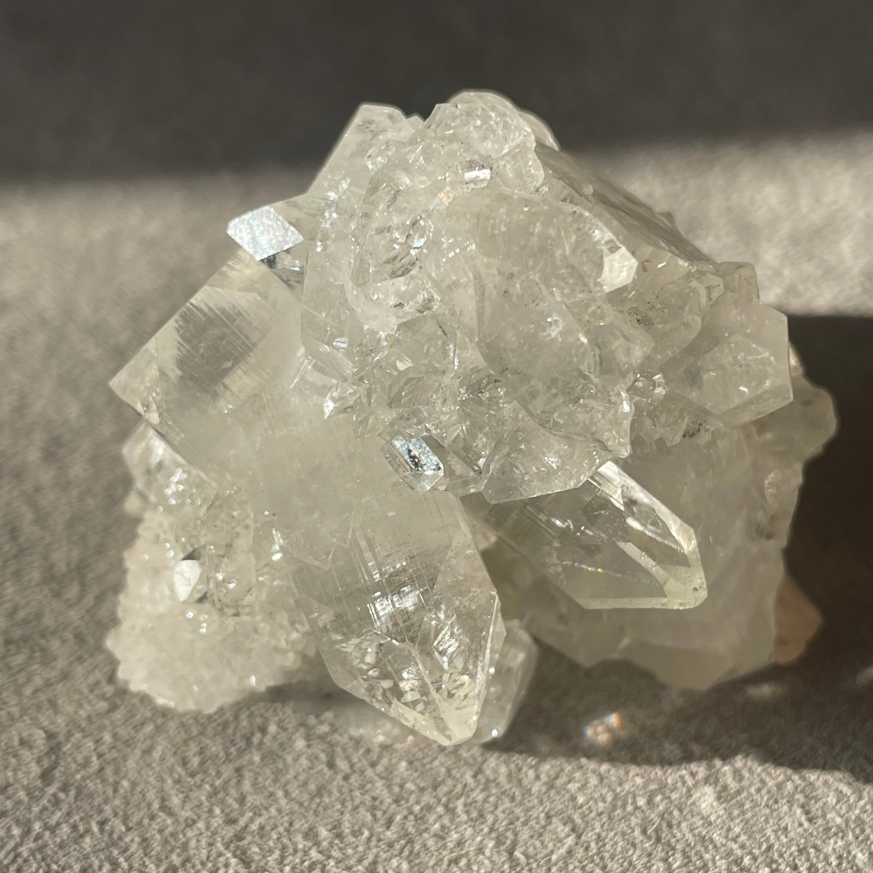 クリアな輝きと透明感のあるアポフィライトのクラスターです。