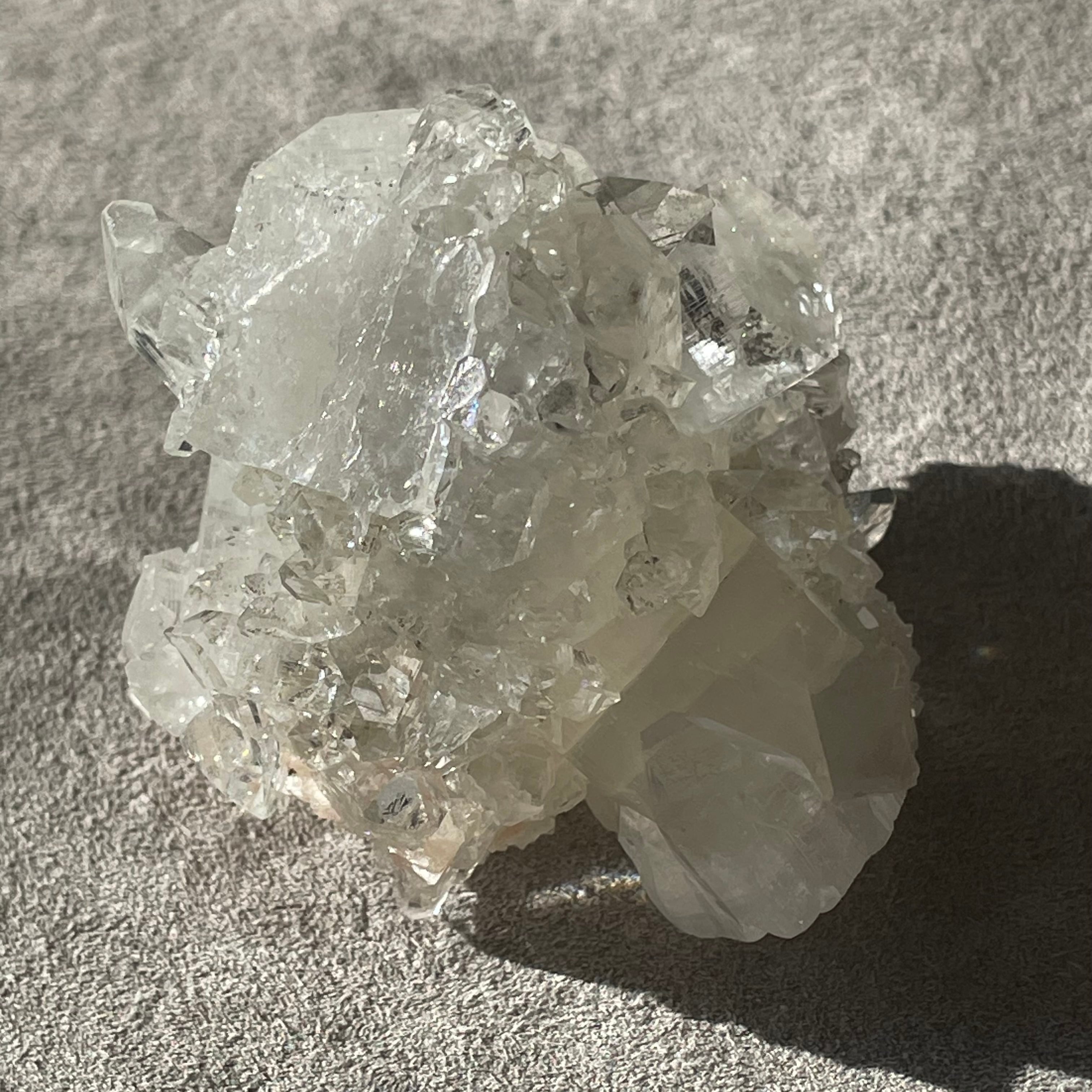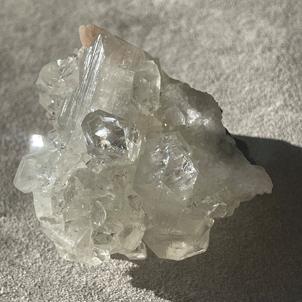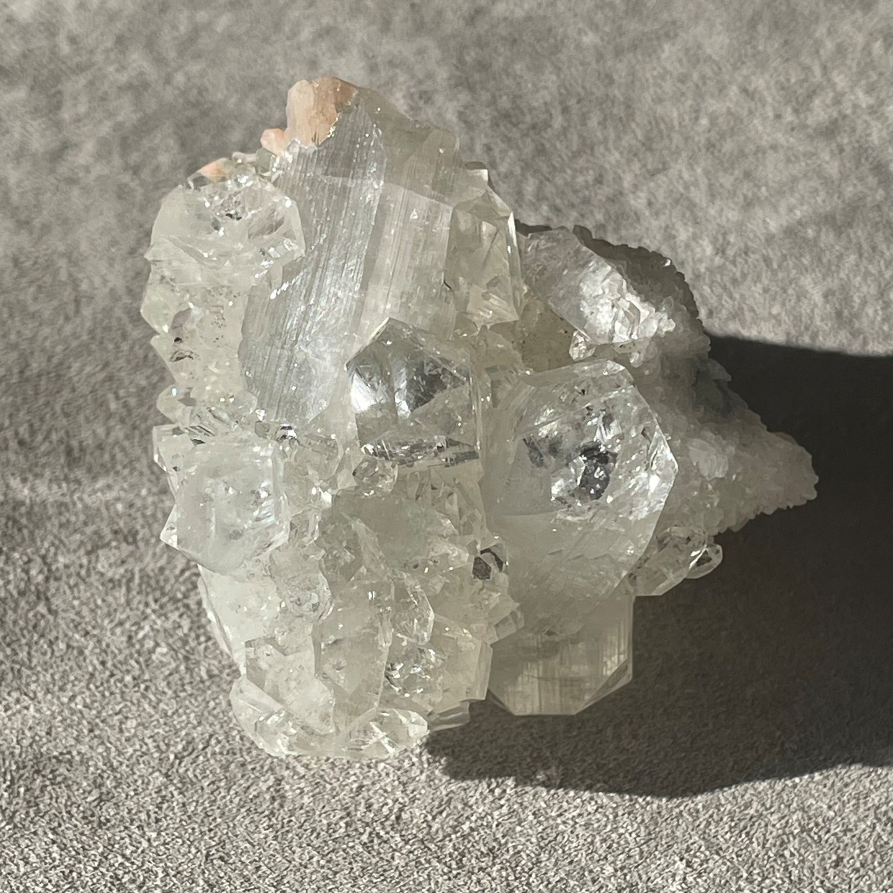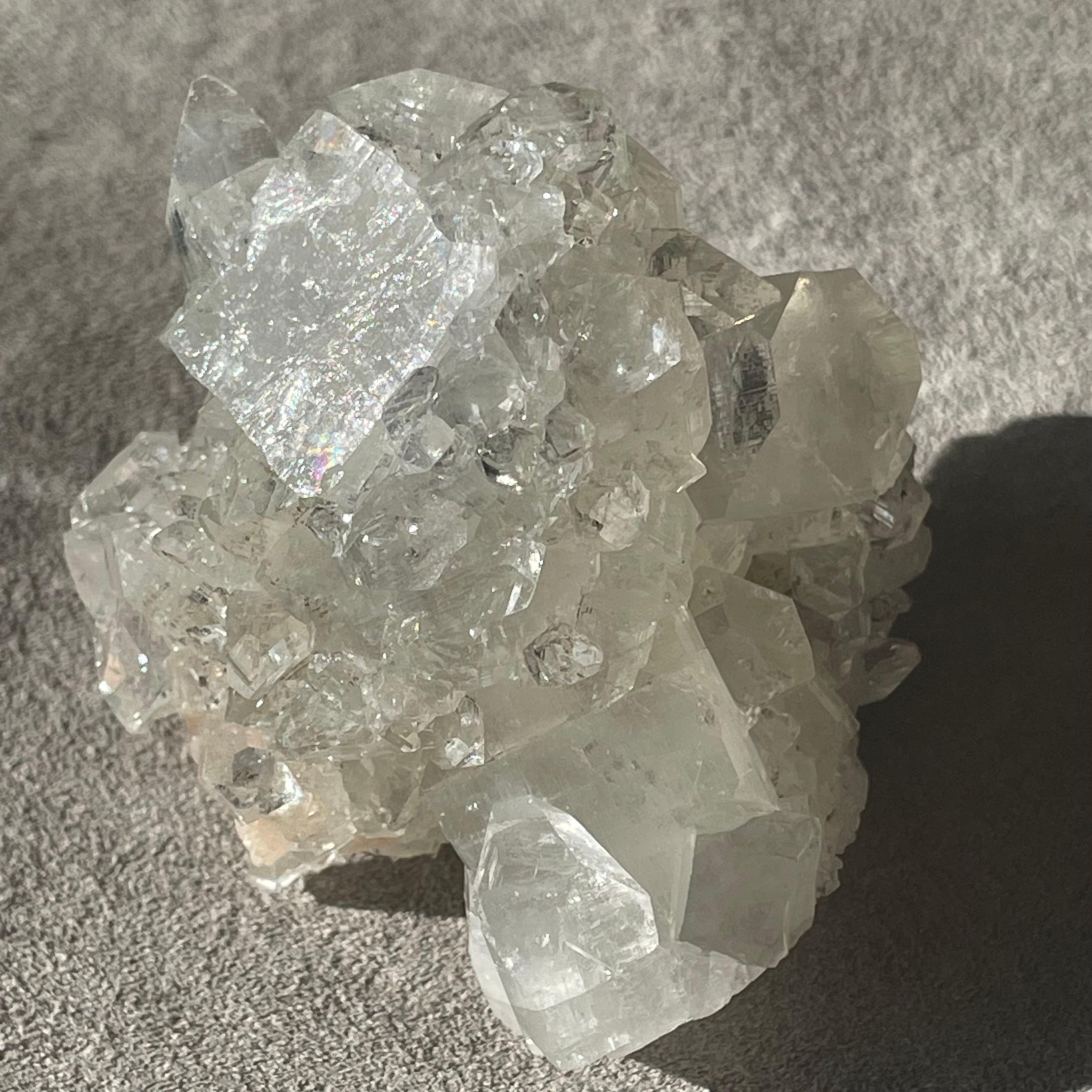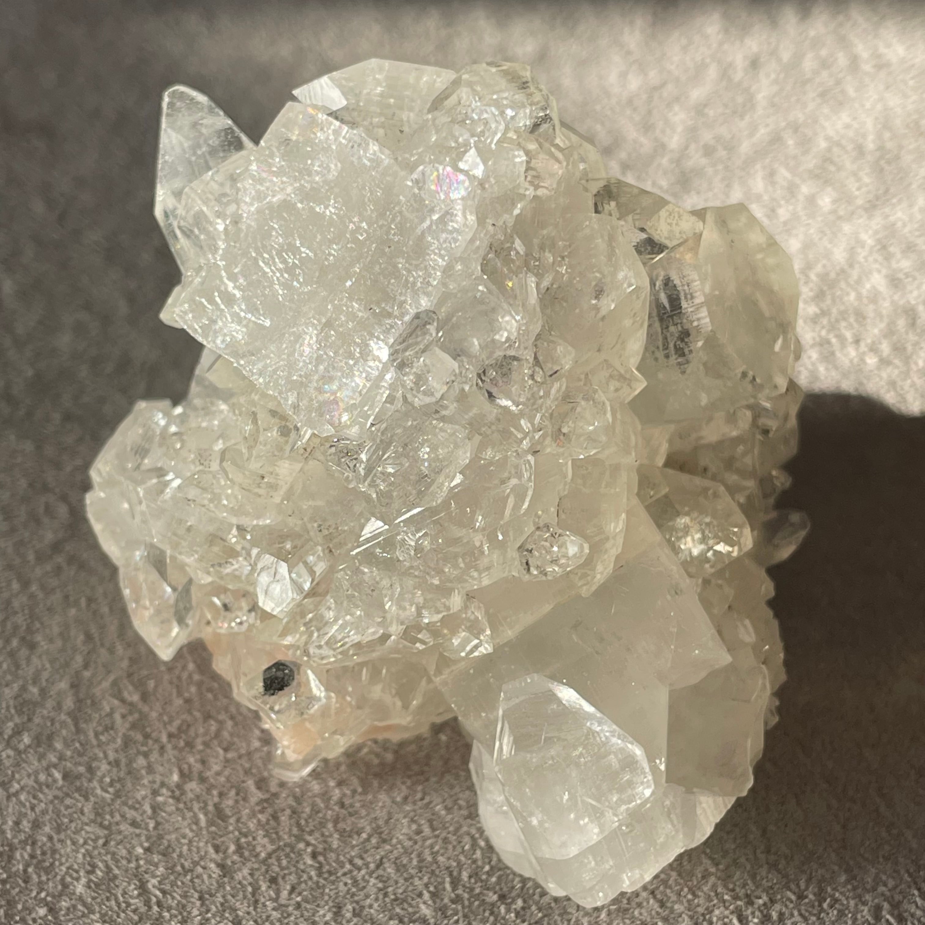 クリアな輝きと透明感のあるアポフィライトのクラスターです。