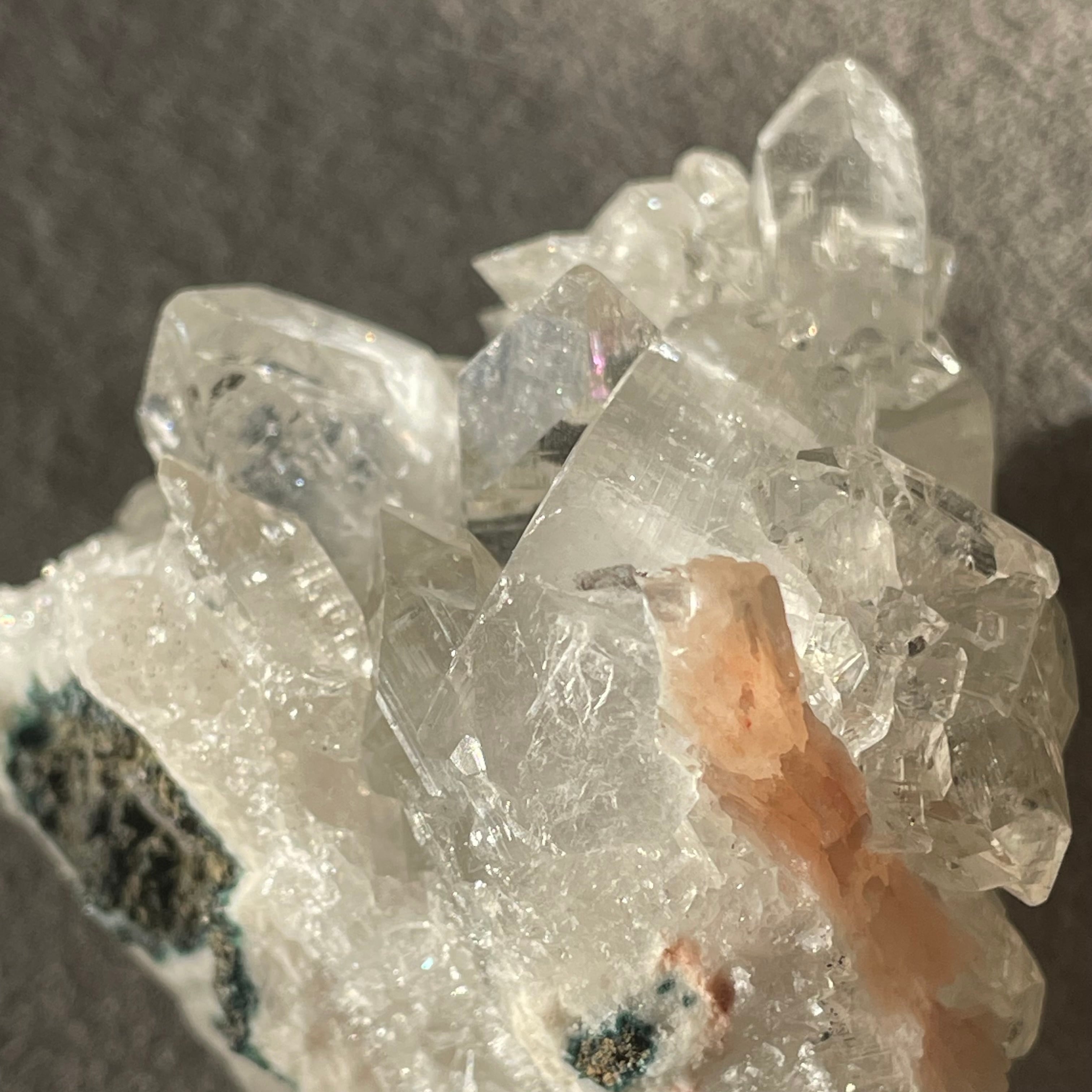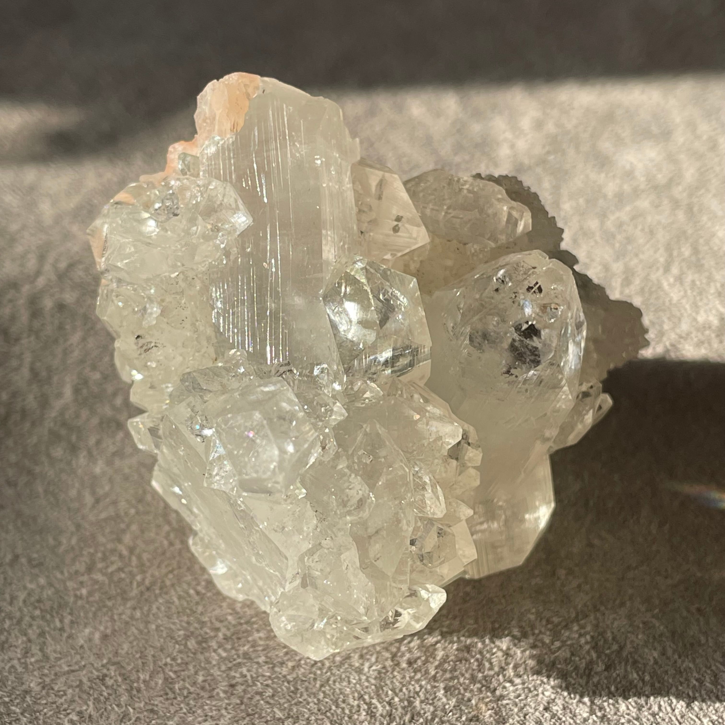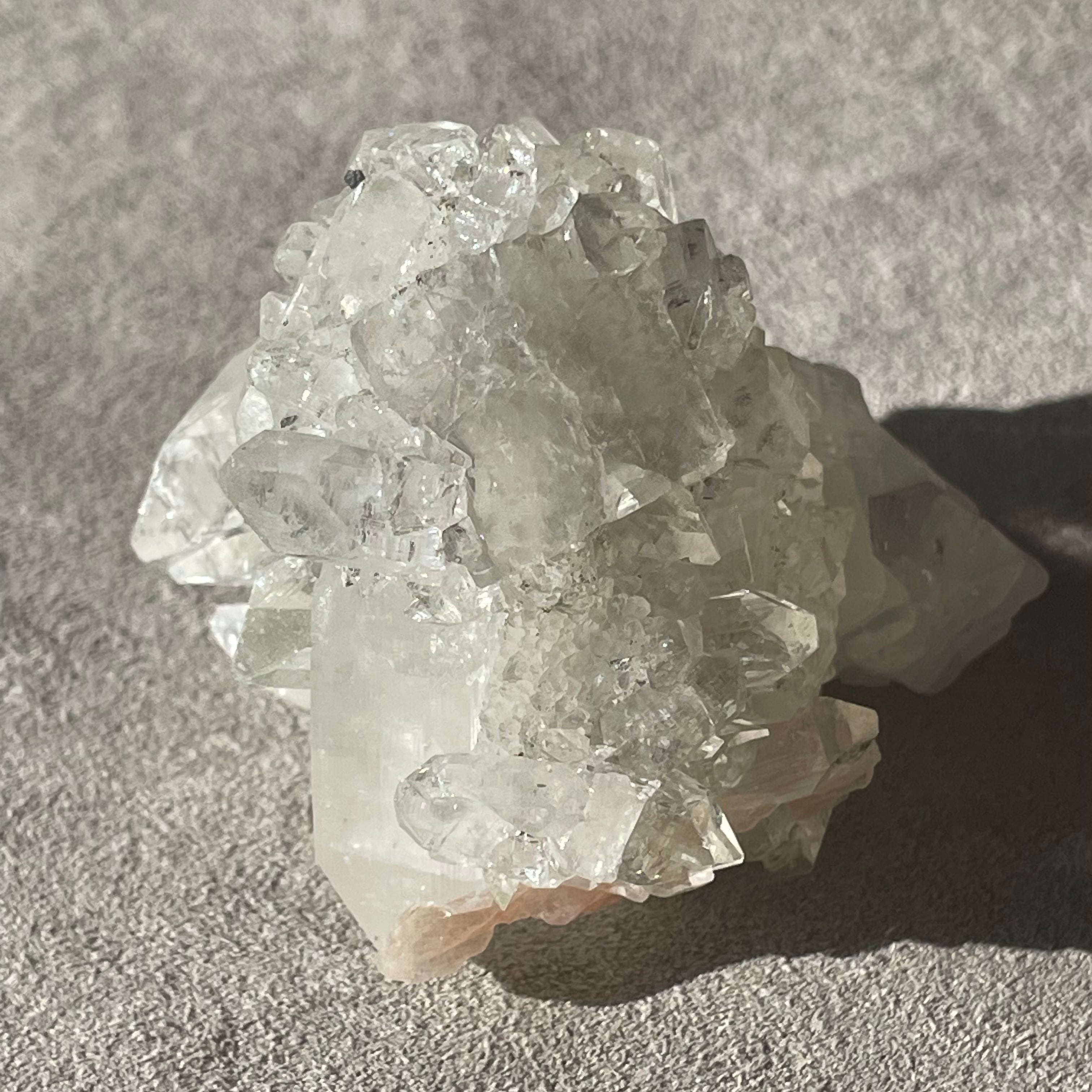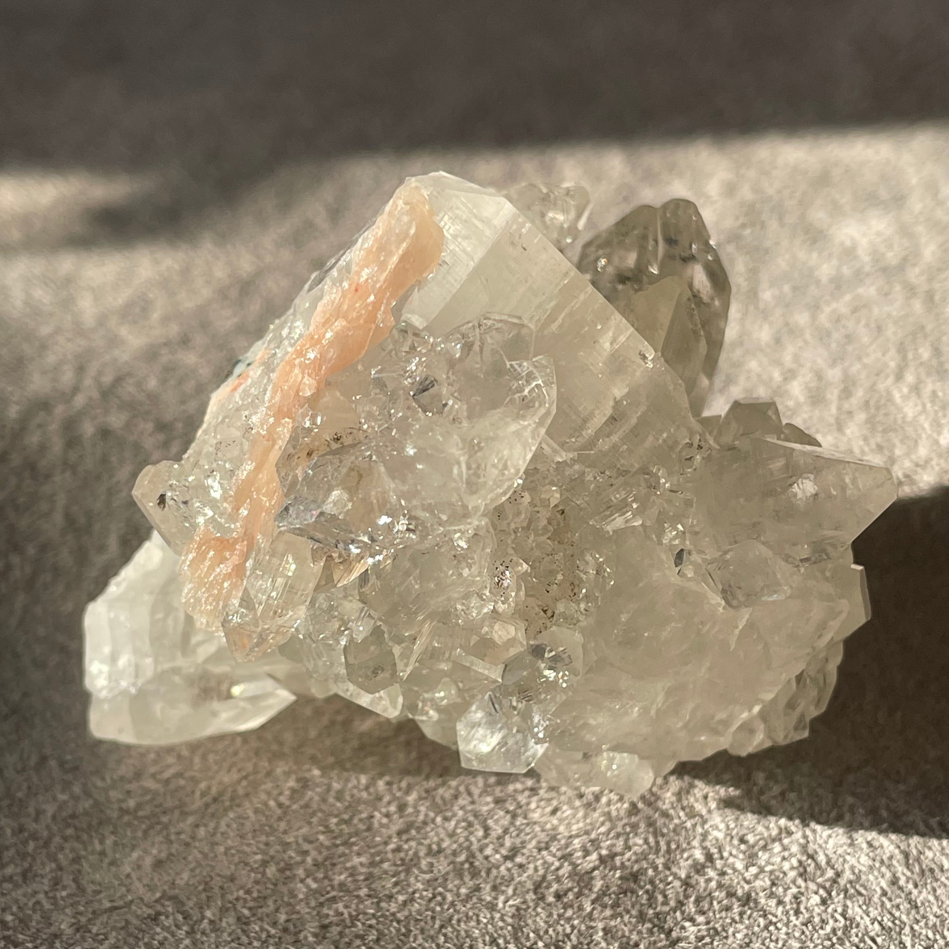 クリアな輝きと透明感のあるアポフィライトのクラスターです。