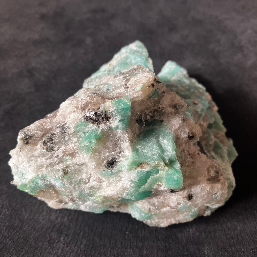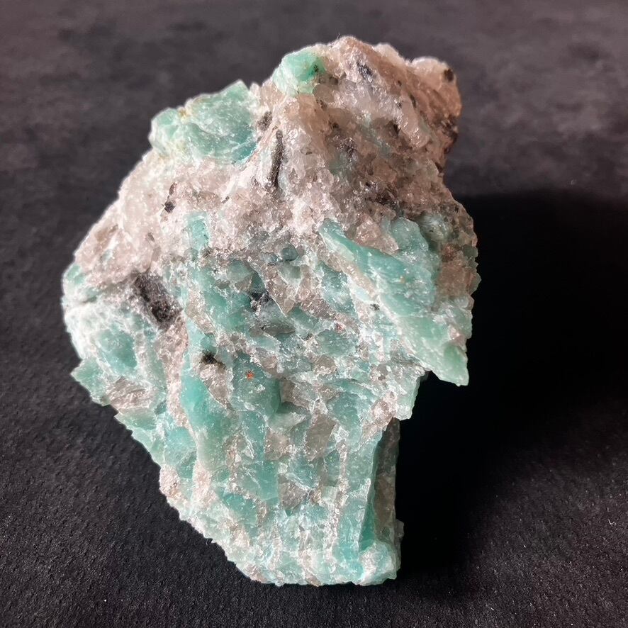 爽やかな青緑のアマゾナイトと黒雲母が共生したロシア産アマゾナイトです。