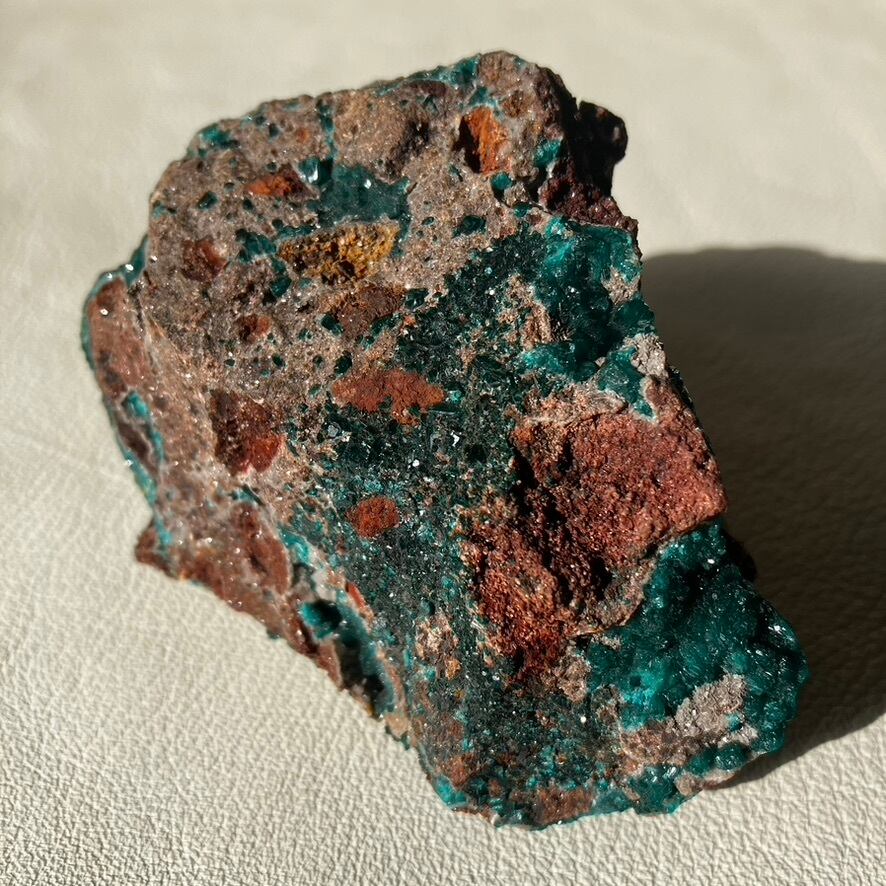 全体に散りばめられたダイオプテーズの結晶がキラキラと輝いています。