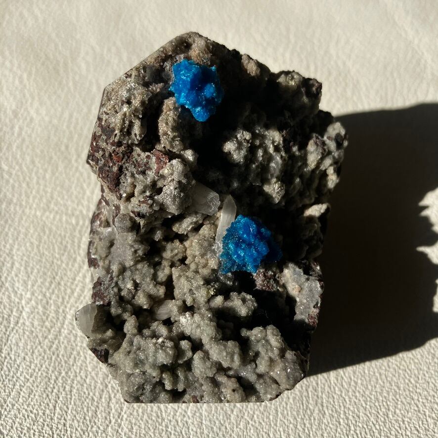 2つの蒼い花が向かい合って咲いている様なカバンサイトの原石です。