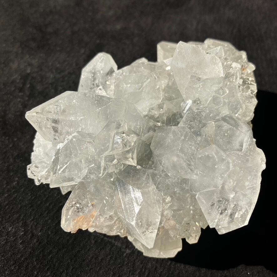 アポフィライトは世界各地で産出される石で、一見水晶に似ていますが輪切りにすると水晶は六角形であるのに対し、アポフィライトは四角形をしています。